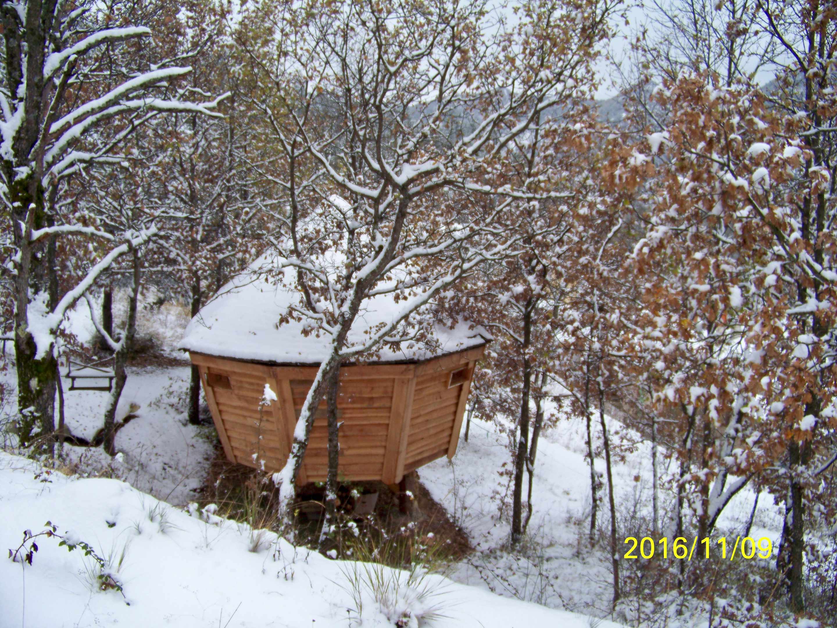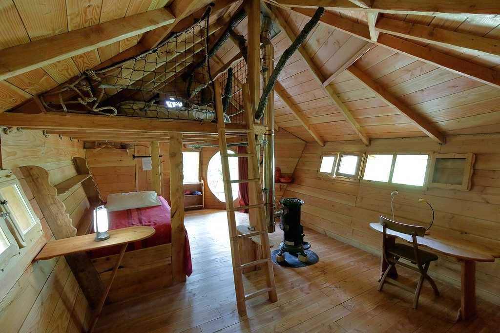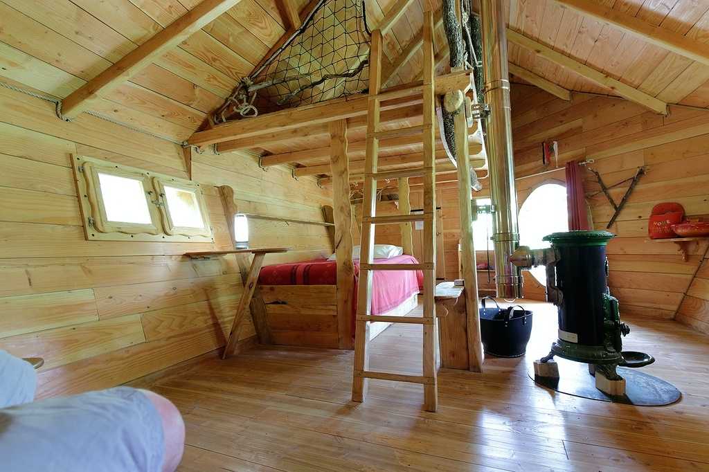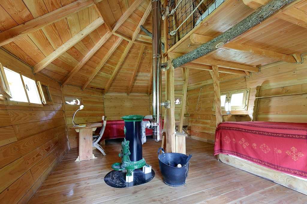 Aménagée cosy esprit bois et nature, la cabane est équipée de cinq couchages ( literies neuves et grand confort), de toilettes sèches à l’ intérieur , de lampes solaires et d’ un poêle à bois pour les soirées d’ hiver. Cabane bien isolée ( double vitrage et isolation ).