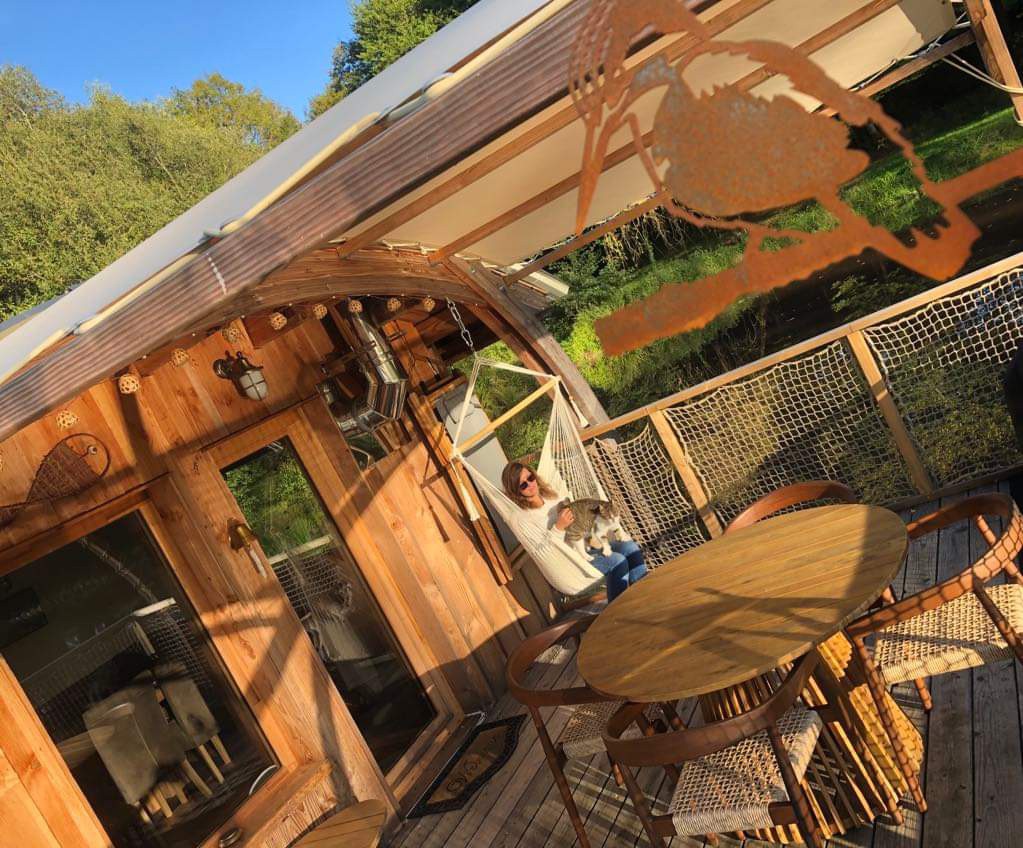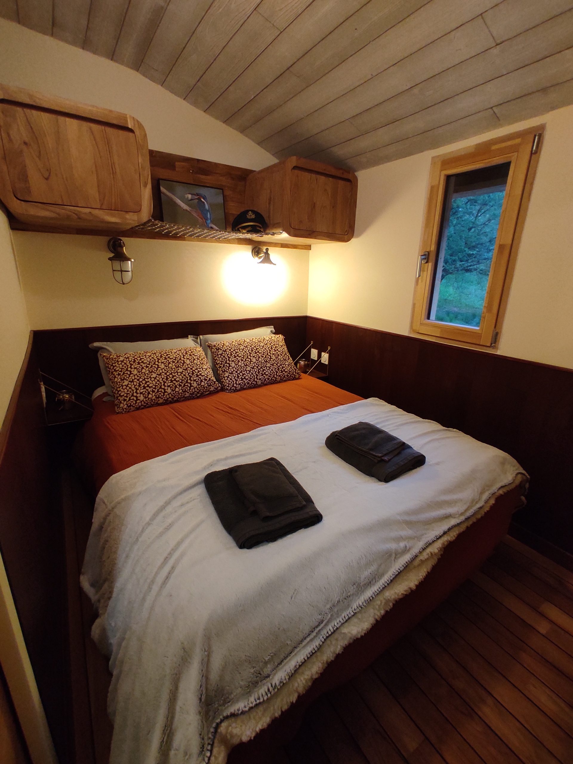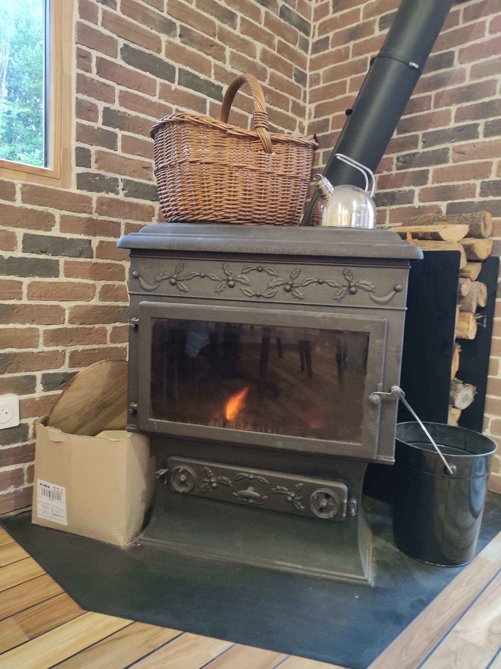 - Poêle à bois pour profiter de la cabane toute l’année.