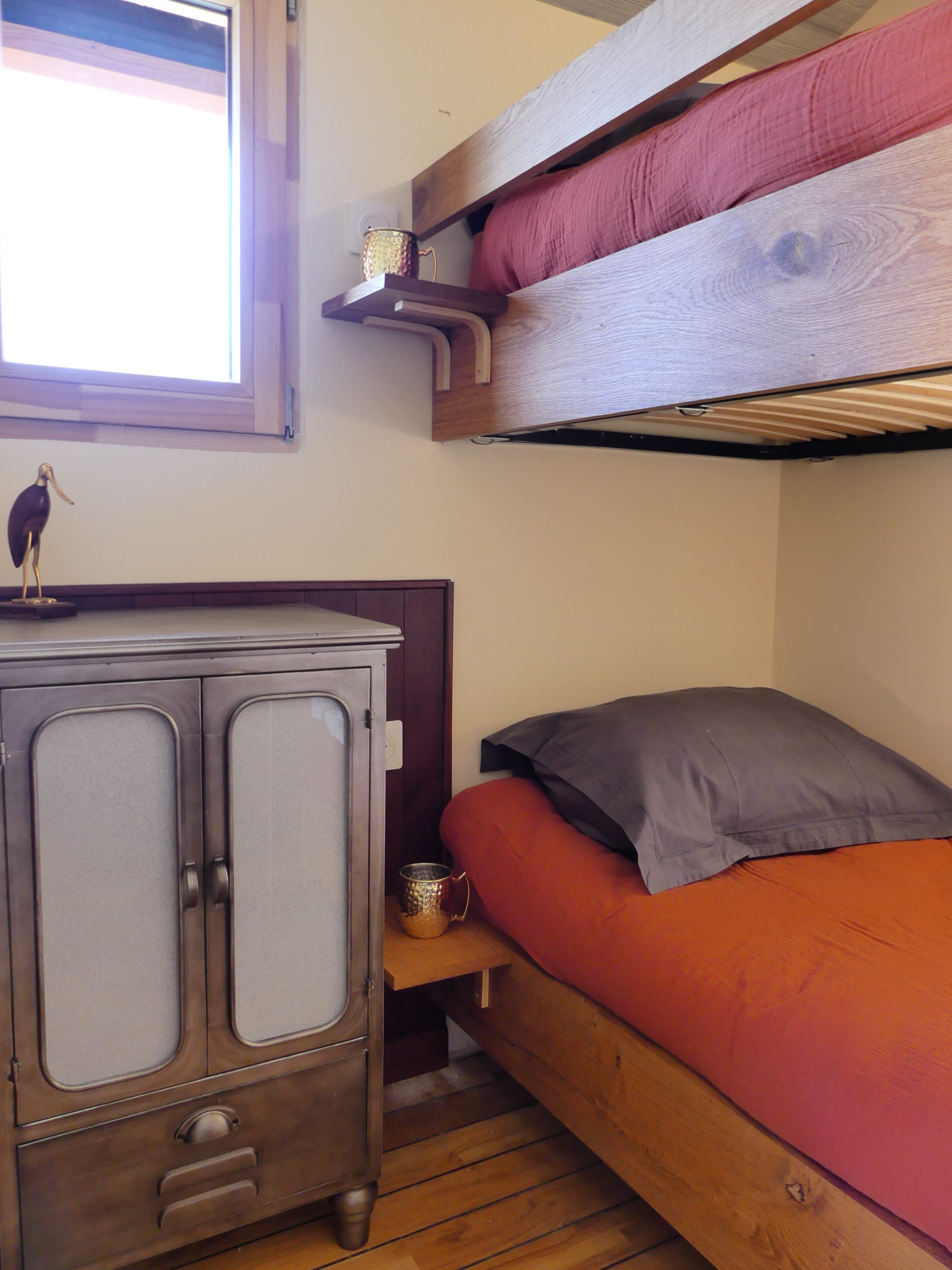 À la nuit tombée, la 𝐜a𝐛i𝐧e d𝐮 𝐜a𝐩i𝐭a𝐢n𝐞 vous abrite dans son nid douillet en gaze de coton. La cabine des mousses (2 lits superposés), quant à elle, promet un trésor pour les explorateurs en herbe.🦉💤🌠🌛