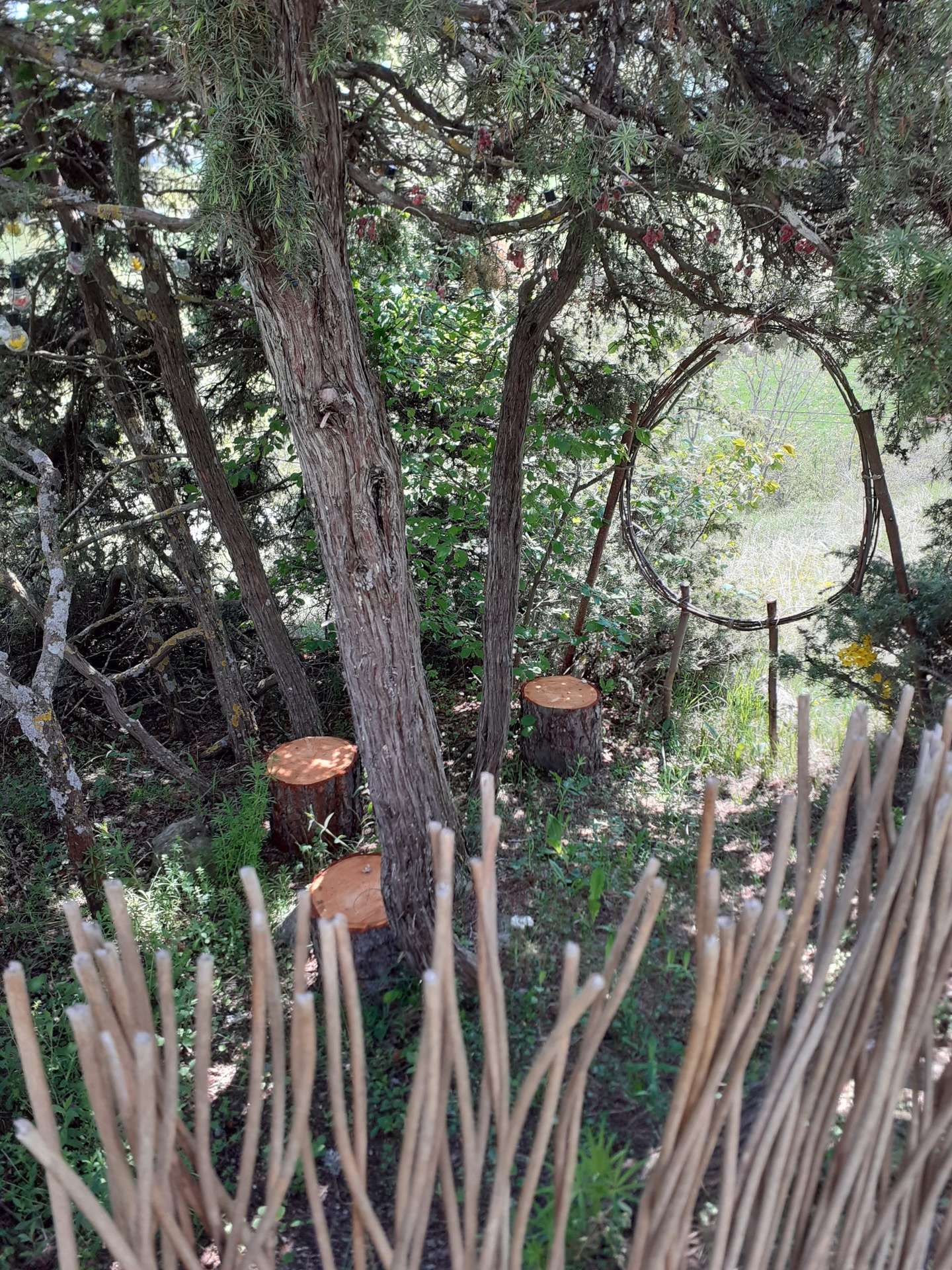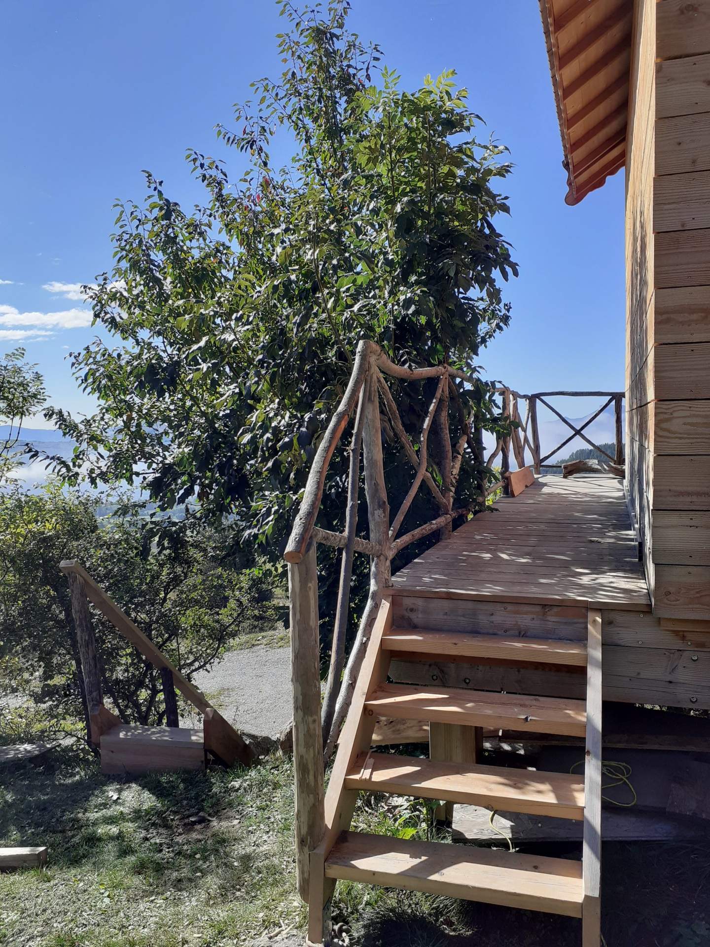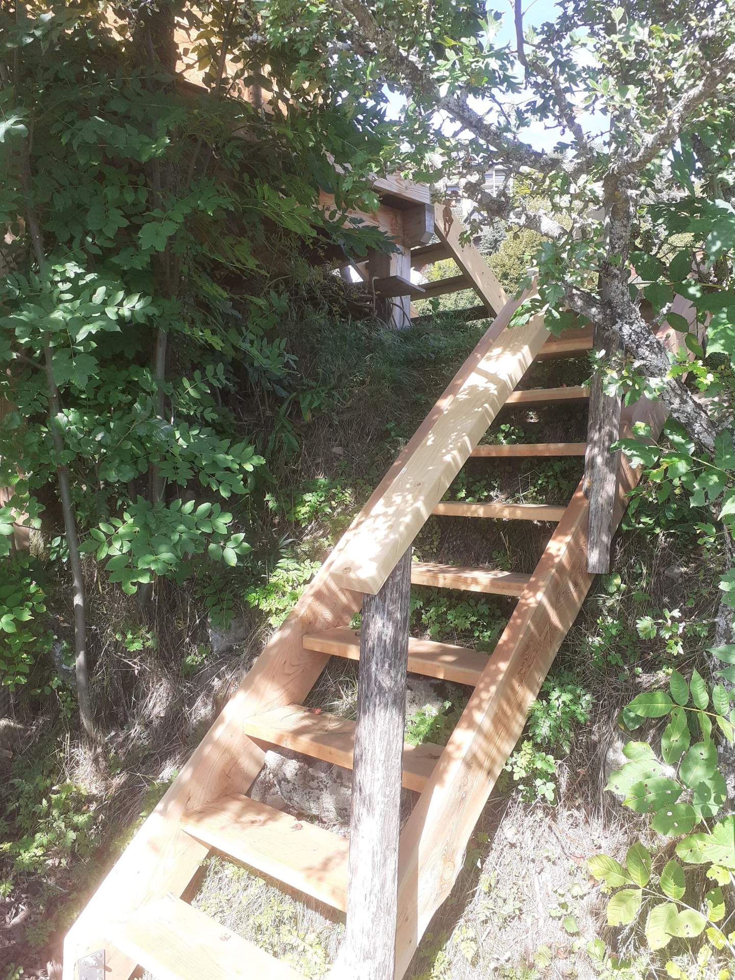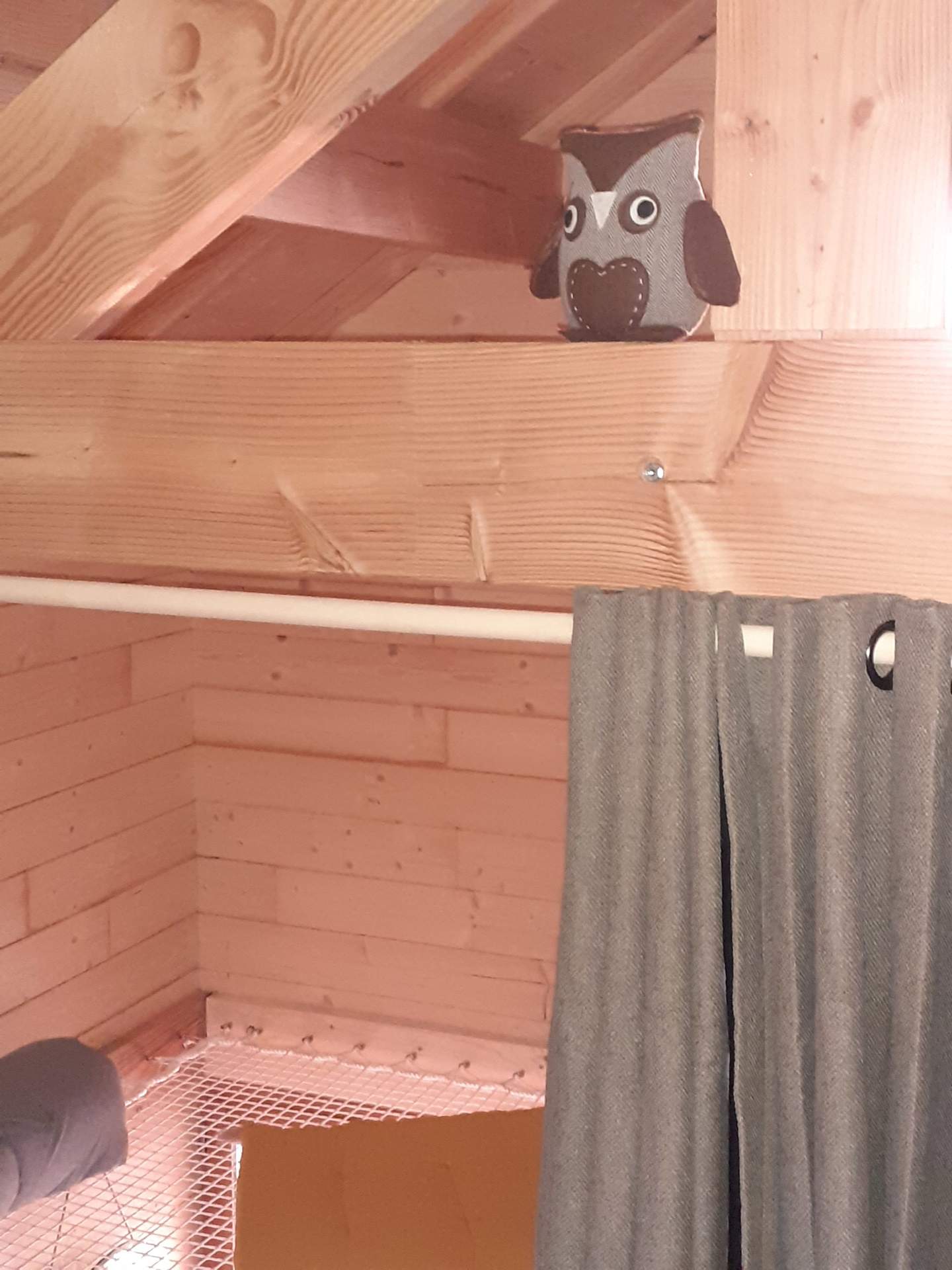 • La cabane , tout confort, conçue pour 4 personnes comporte une pièce de vie (17 m2 ) et une mezzanine avec un filet de détente ( 20m2 ) accessible par une échelle de meunier.