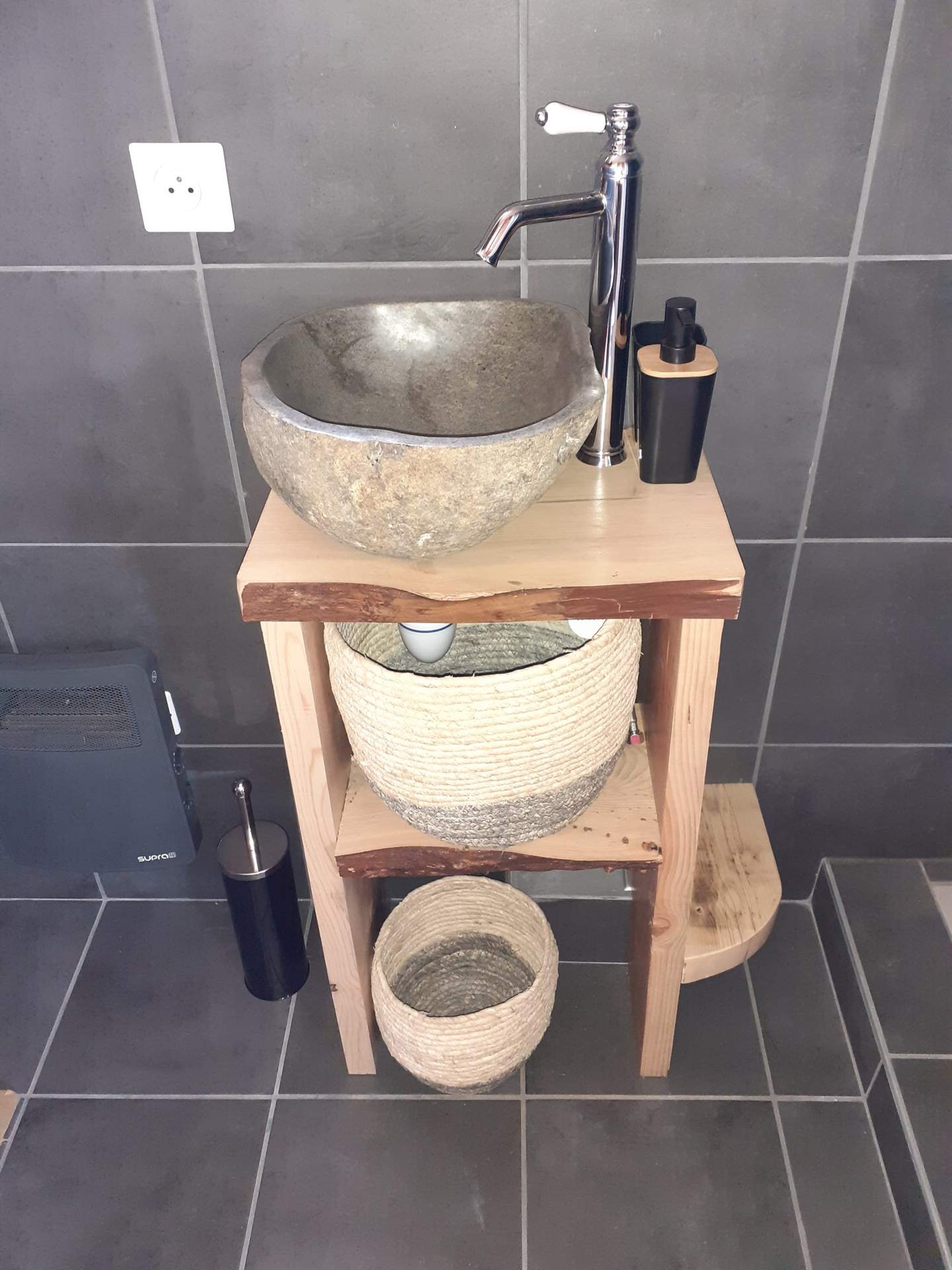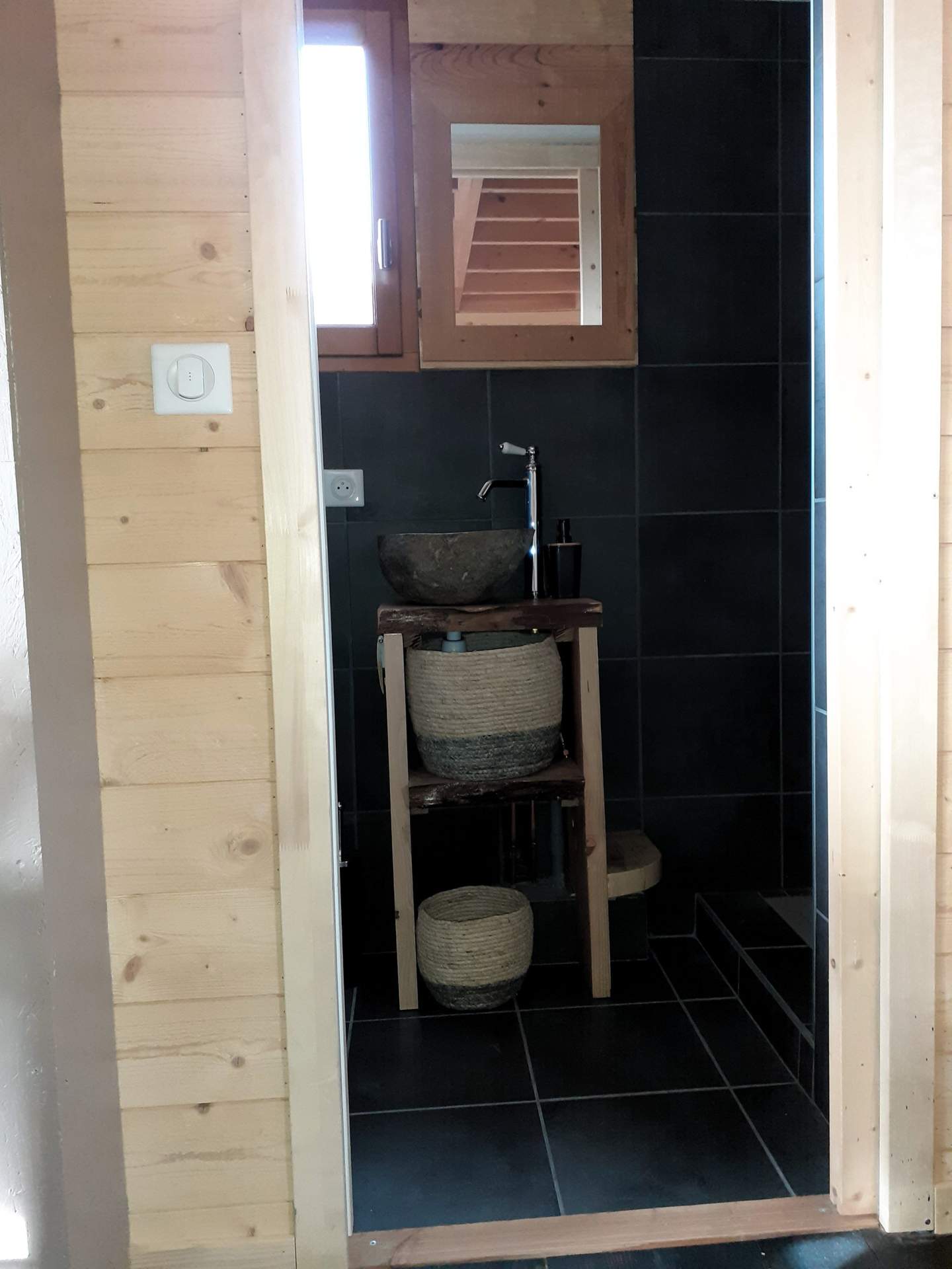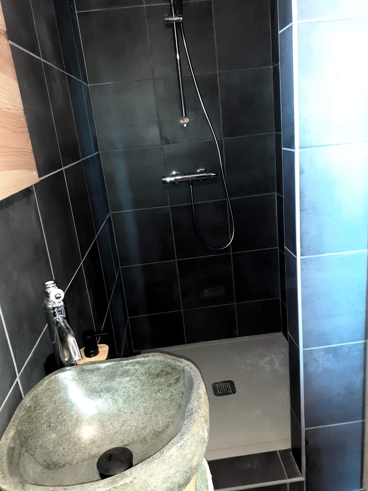 • La salle d’eau ( 3m2 ) est dotée d’une vasque, d’une douche ( 1m2 ) et d’un WC.