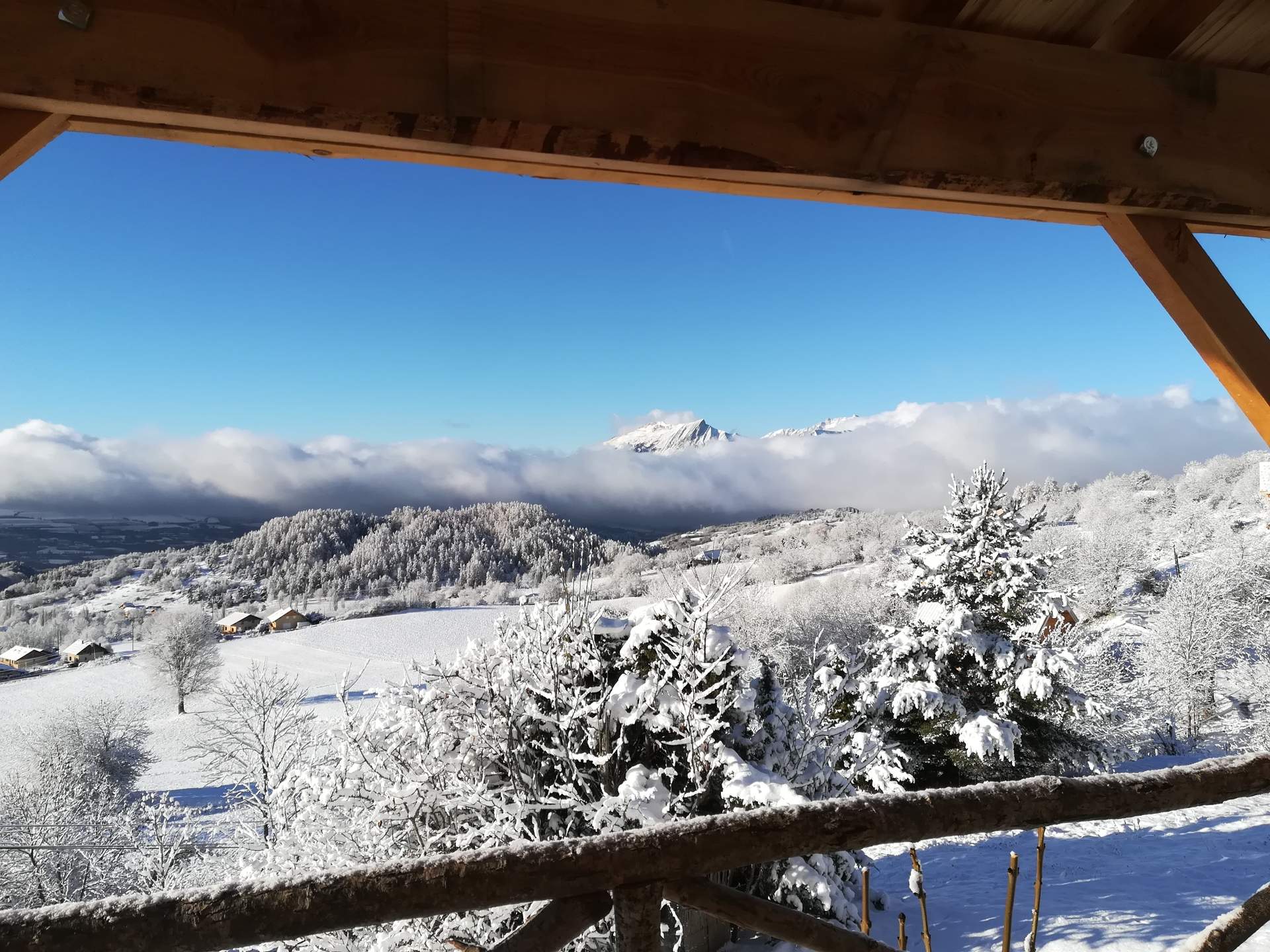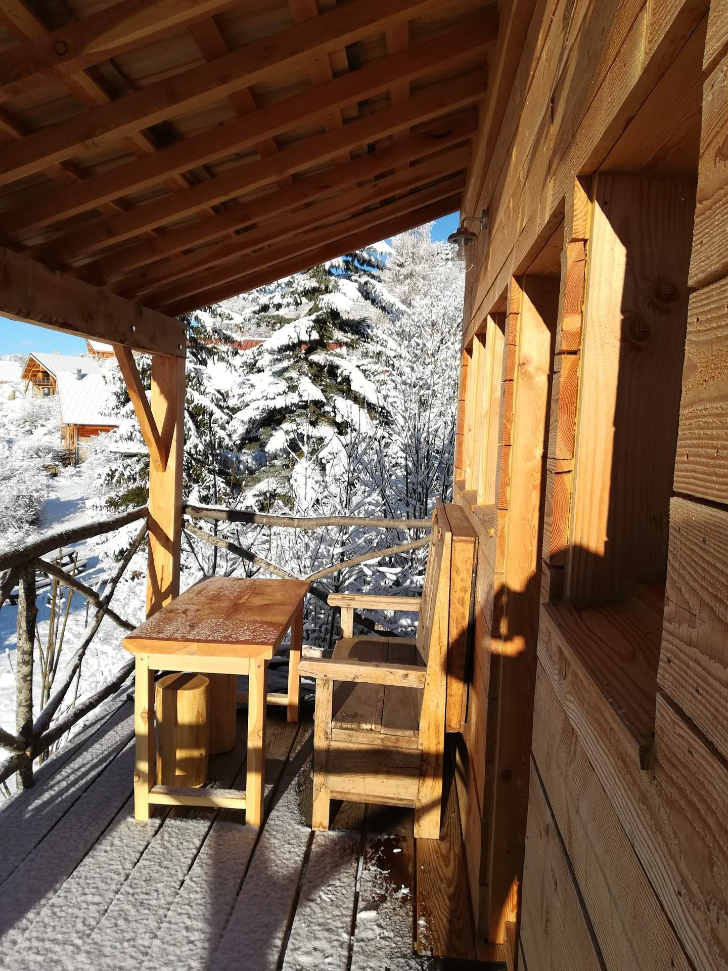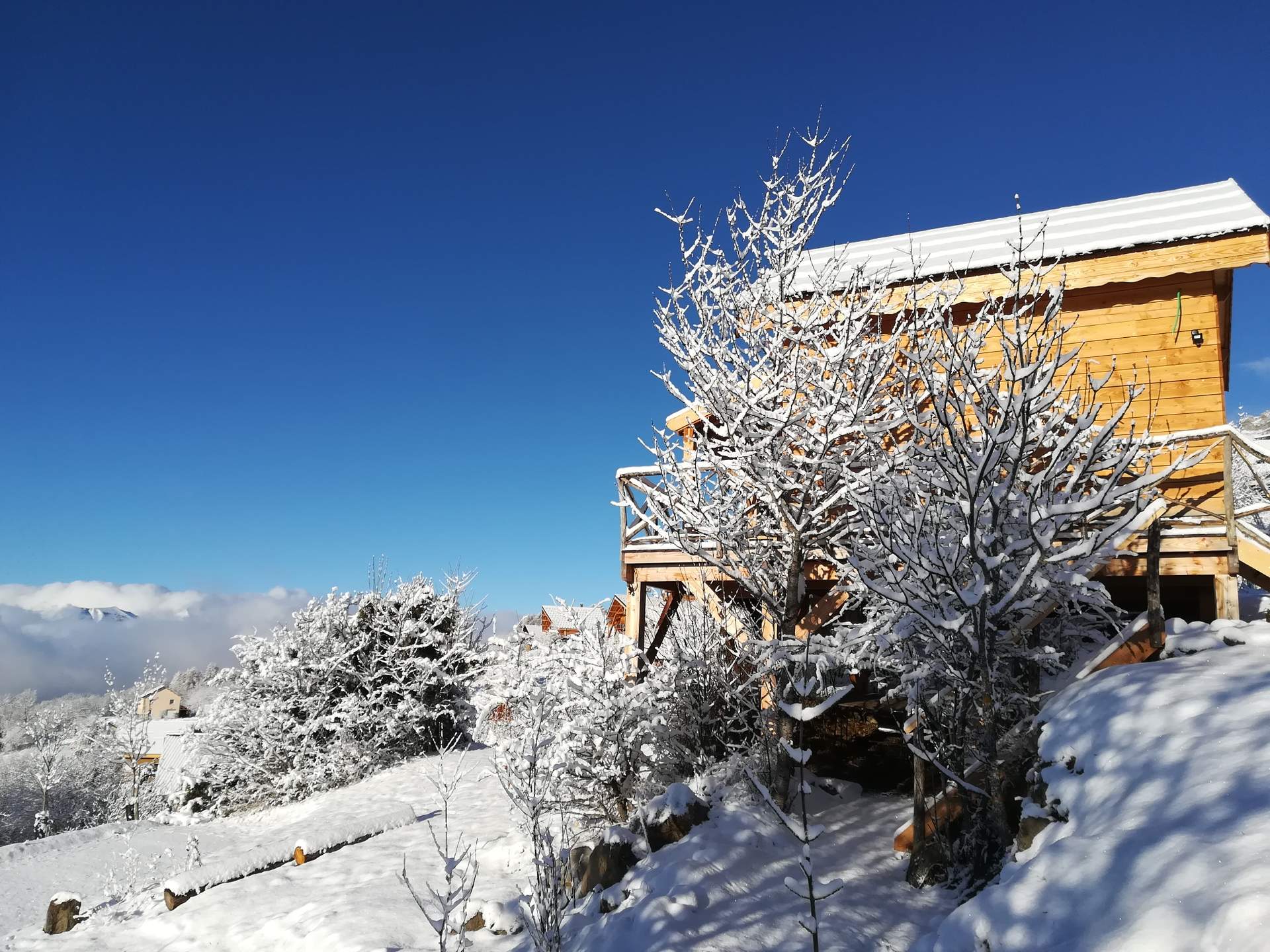 Cabane sur pilotis , tout confort , lovée dans les arbres avec une vue exceptionnelle, dans un secteur verdoyant et calme d'une station de ski.