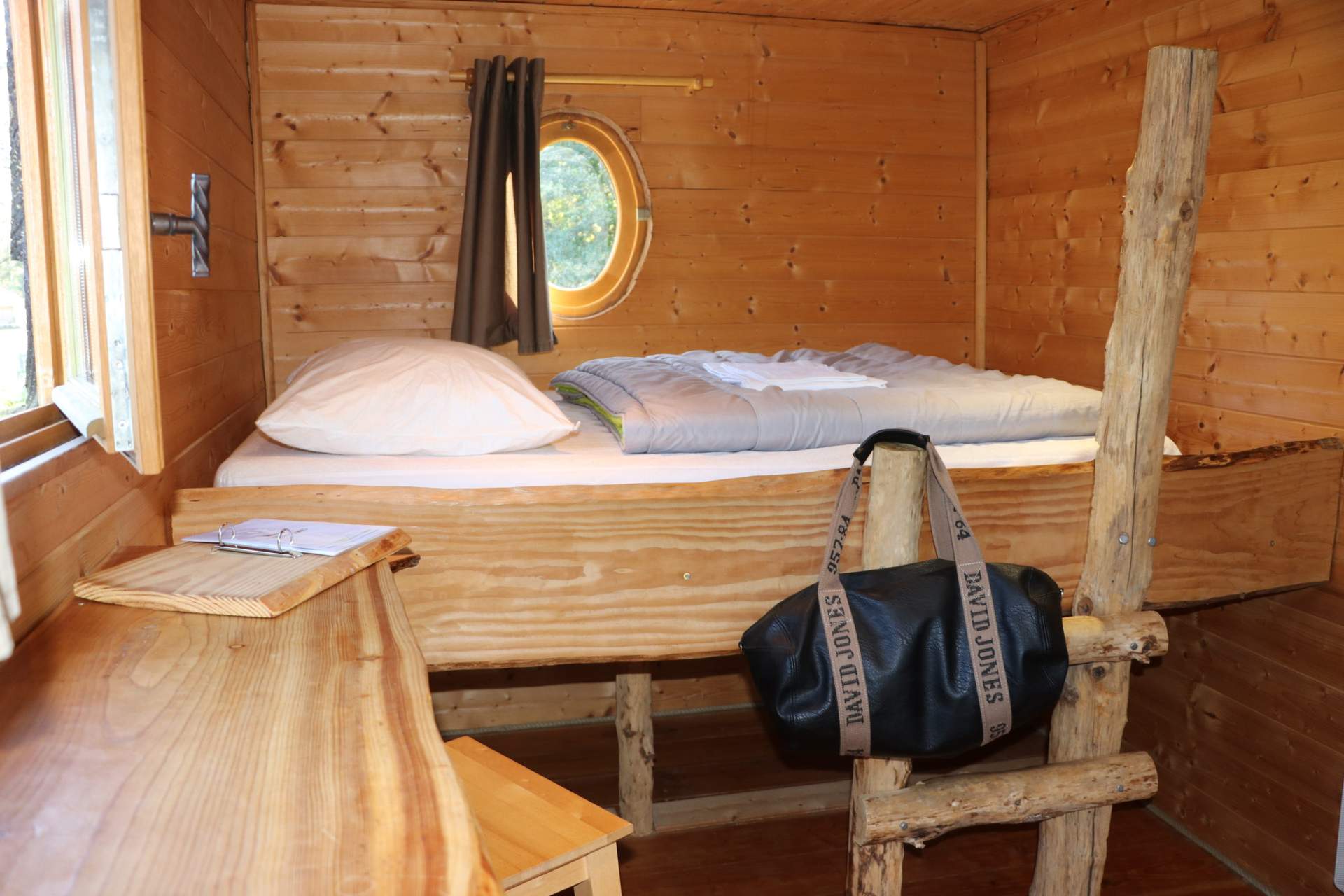Cet hébergement est équipé de toilettes sèches. Il comprend une échelle en rondins de bois pour accéder au lit en hauteur ( à 105 cm du sol ).