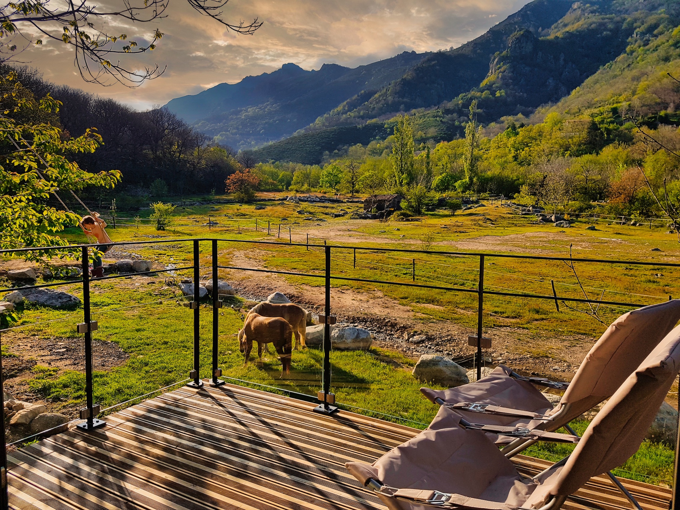 La cabane la tour bleue est implantée sur d’ancienne faïsses avec une vue imprenable sur le Tanargue. Cette cabane insolite du haut de ses 3 étages vous offrira des moments magiques tout au long de la journée. Sa terrasse vous permettra de vous immerger dans cette nature enchantée et prendre rendez-vous avec un coucher de soleil hors du commun.