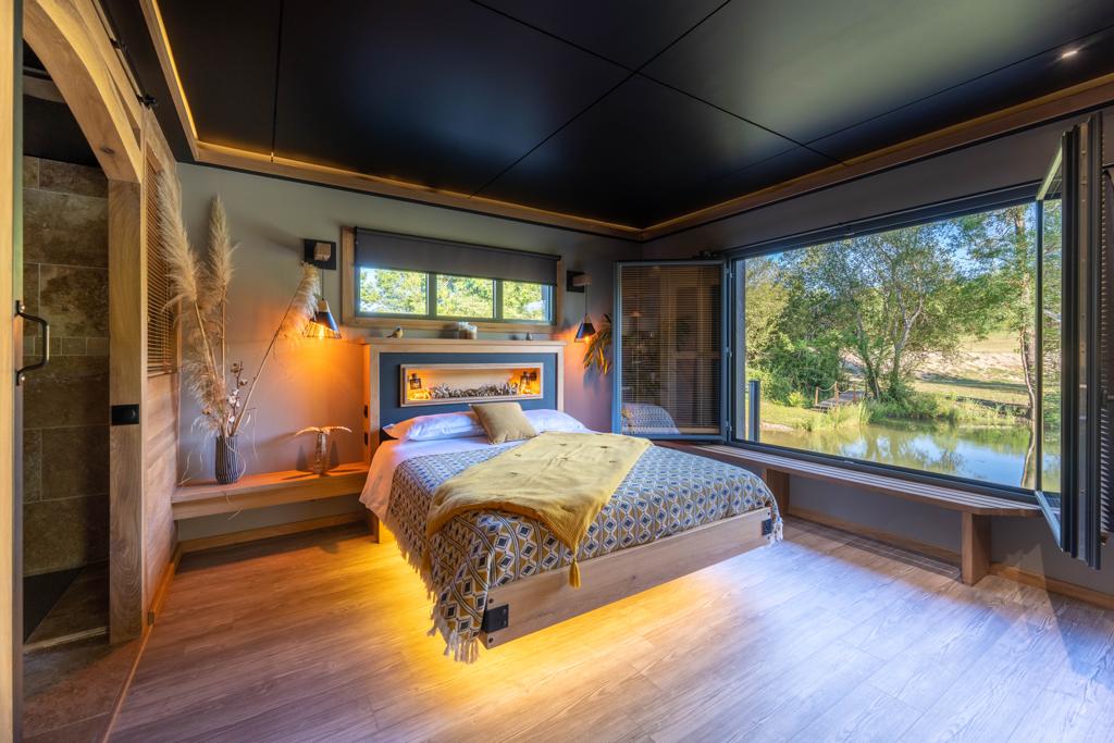 Une cabane très grand confort, perchée en bord de son lac privé. Au coeur de notre domaine de 25 ha, dans un écrin de Nature exceptionnel.