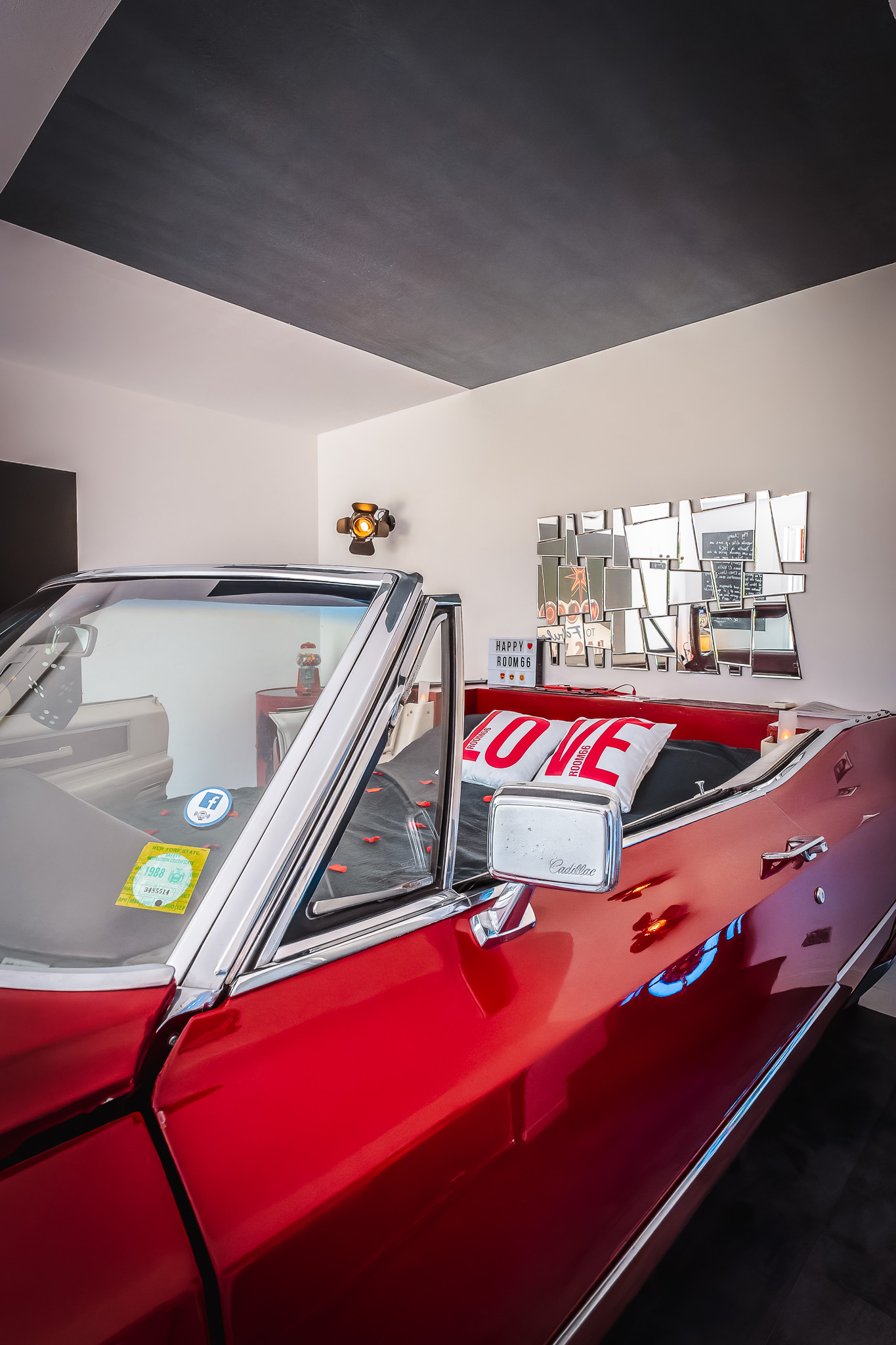 Et dormir dans un monument de l’automobile avec tout le confort d’un Motel, vous l’avez déjà fait ? Imaginez une élégante Cadillac cabriolet rouge pétante transformée en lit pour une nuit bling bling où vous embarquerez pour un voyage qui vous menera tout droit à Las Vegas !