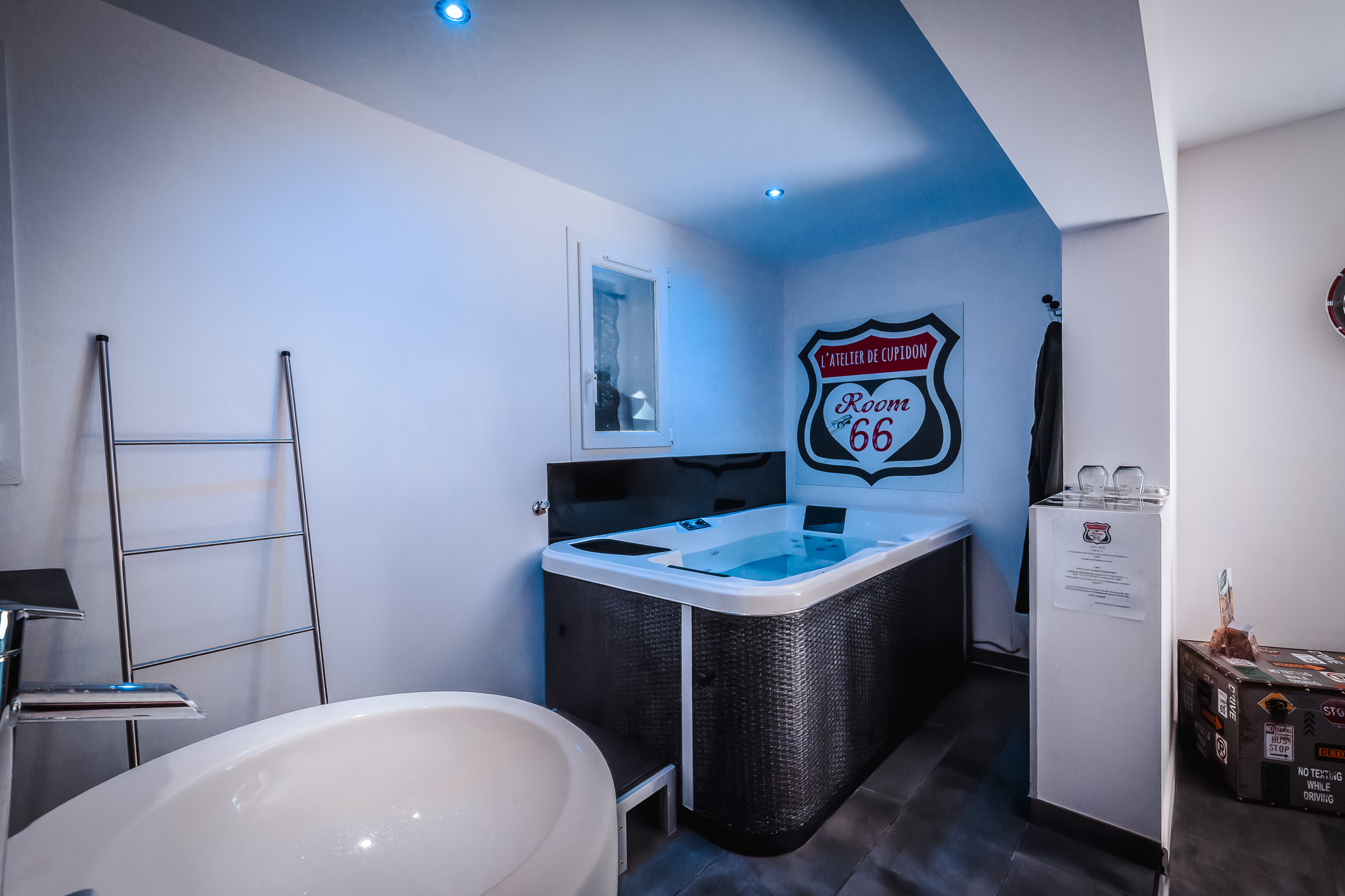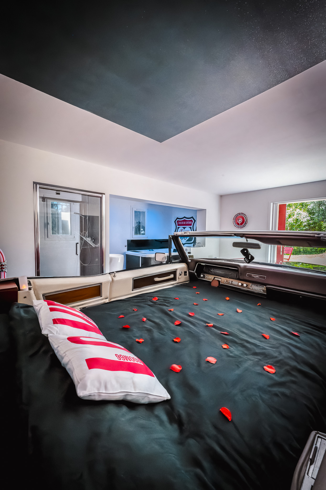 Et le confort ne se limite pas seulement à la Cadillac qui se niche au coeur d’une Suite de 40m² avec SPA privatif dans la chambre pour un instant cocooning à souhait sans oublier notre magnifique jardin paysager et notre petite rivière privative… A vous d’imaginer le reste 😉 !