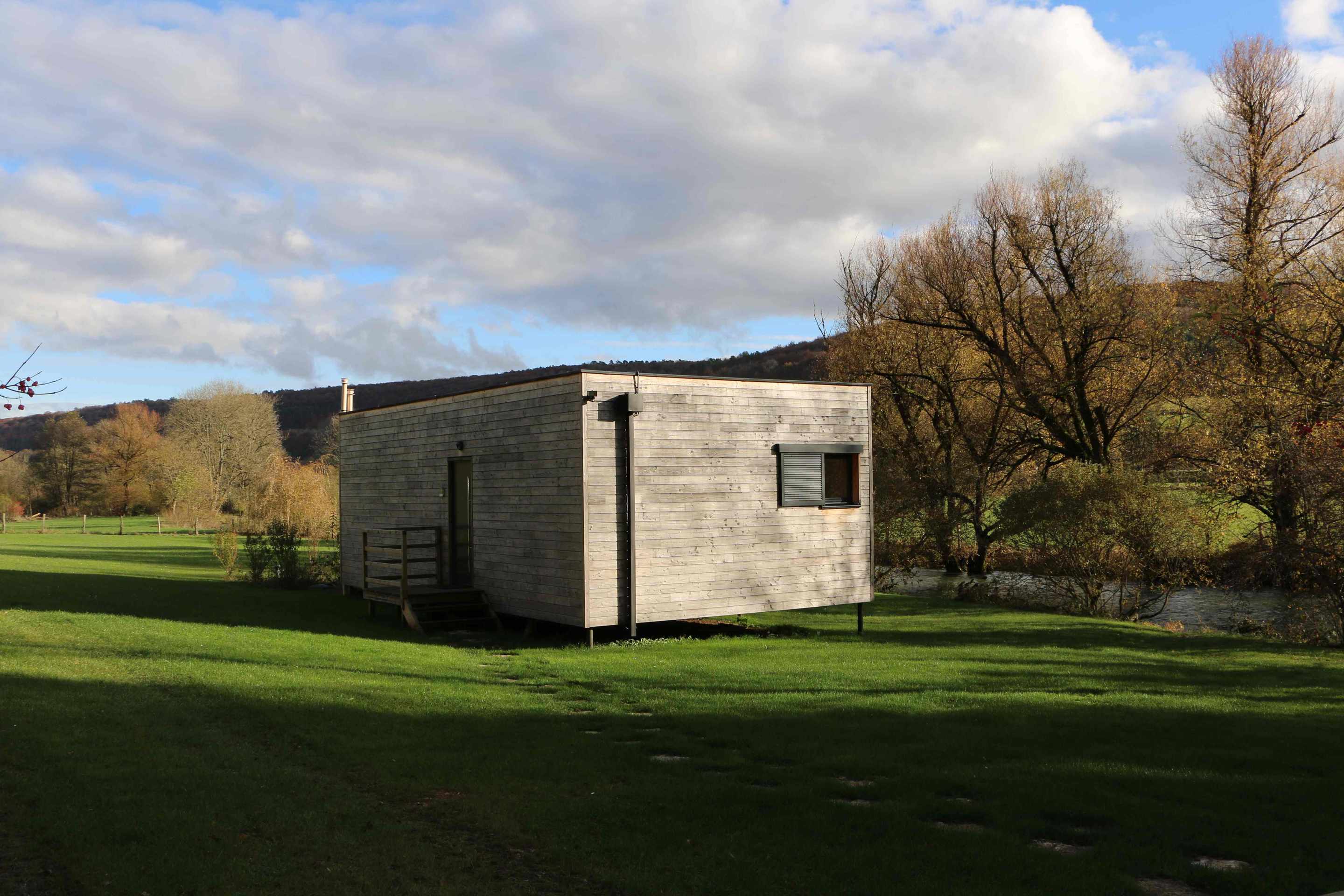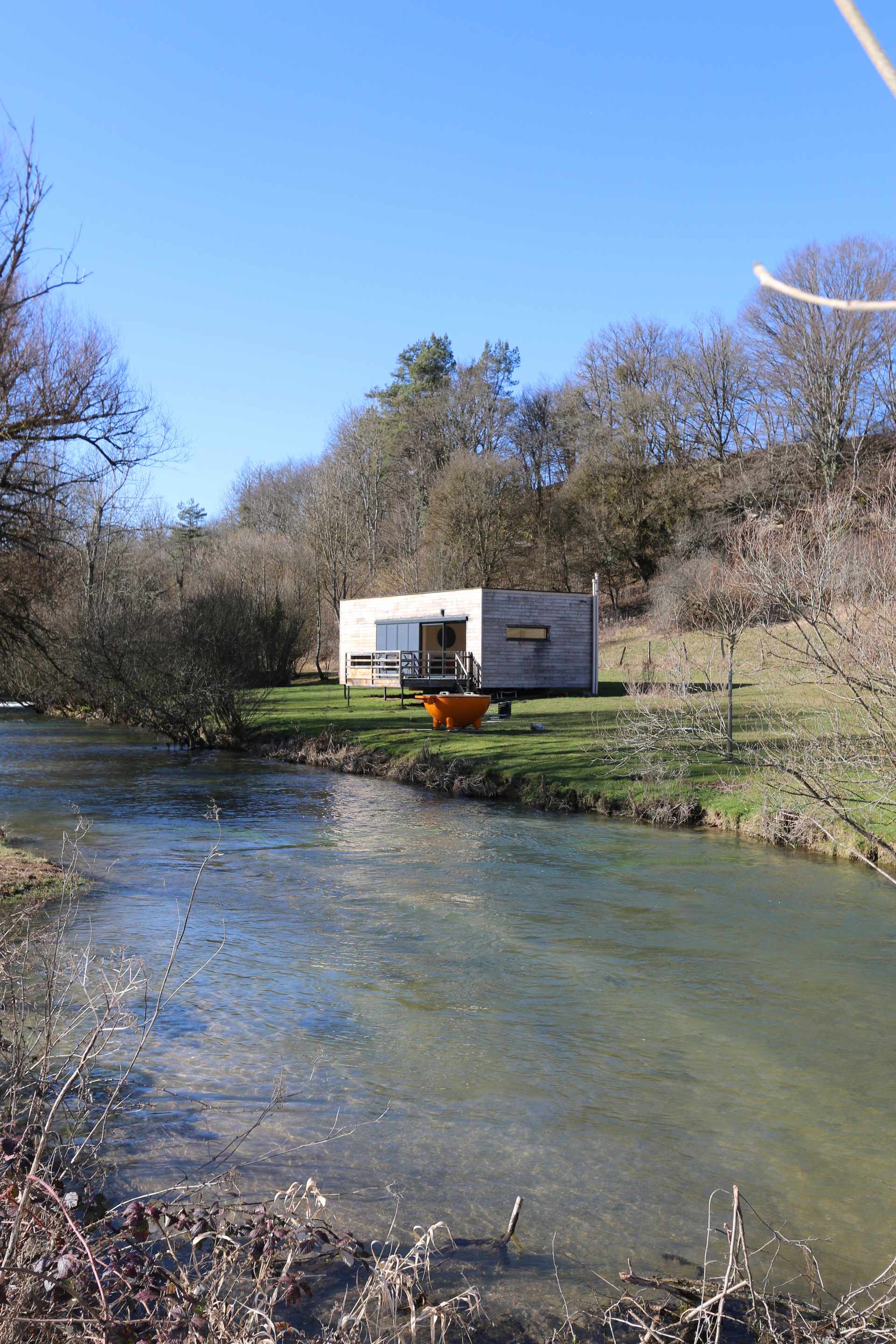 Conçue par le cabinet d’architecture Ar-tek, spécialisé dans les résidences innovantes, Richard et Vincent Cretin ont voulus réaliser une habitation « comme posée » dans ce cadre idyllique. Ils mettent ainsi en valeur : la rivière, la nature dans un environnement calme et reposant.