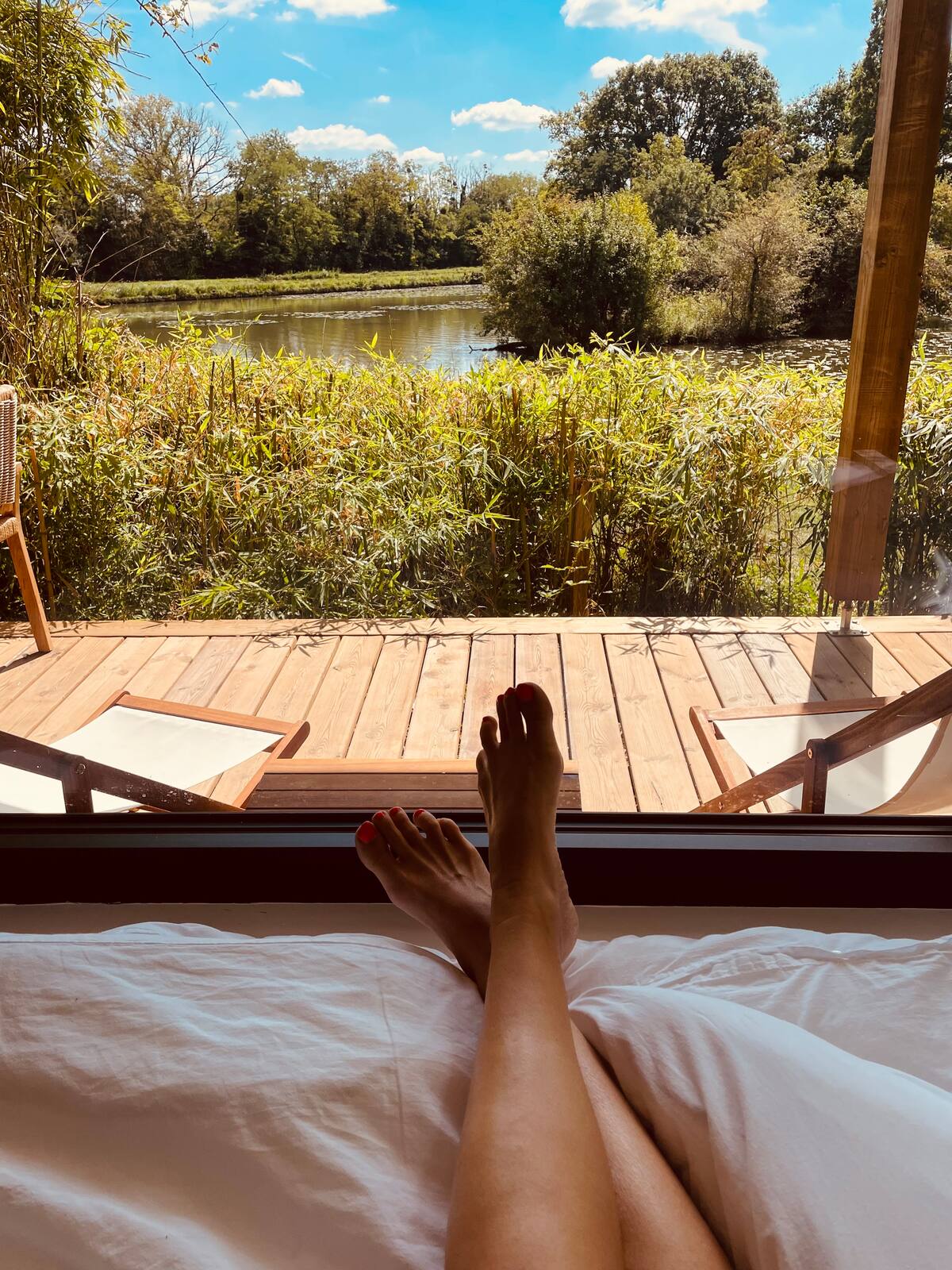 Lodge haut de gamme & bain nordique privatif.Évadez-vous dans un écrin de verdure au Domaine du Canal :Lodge de Luxe avec Bain nordique privatif chauffé à 38°, à seulement 1h15 de Paris. Offrez-vous une parenthèse unique dans notre lodge intimiste haut de gamme, niché au cœur d’un écrin de verdure entre bambous, étang paisible et face au canal de Briare.