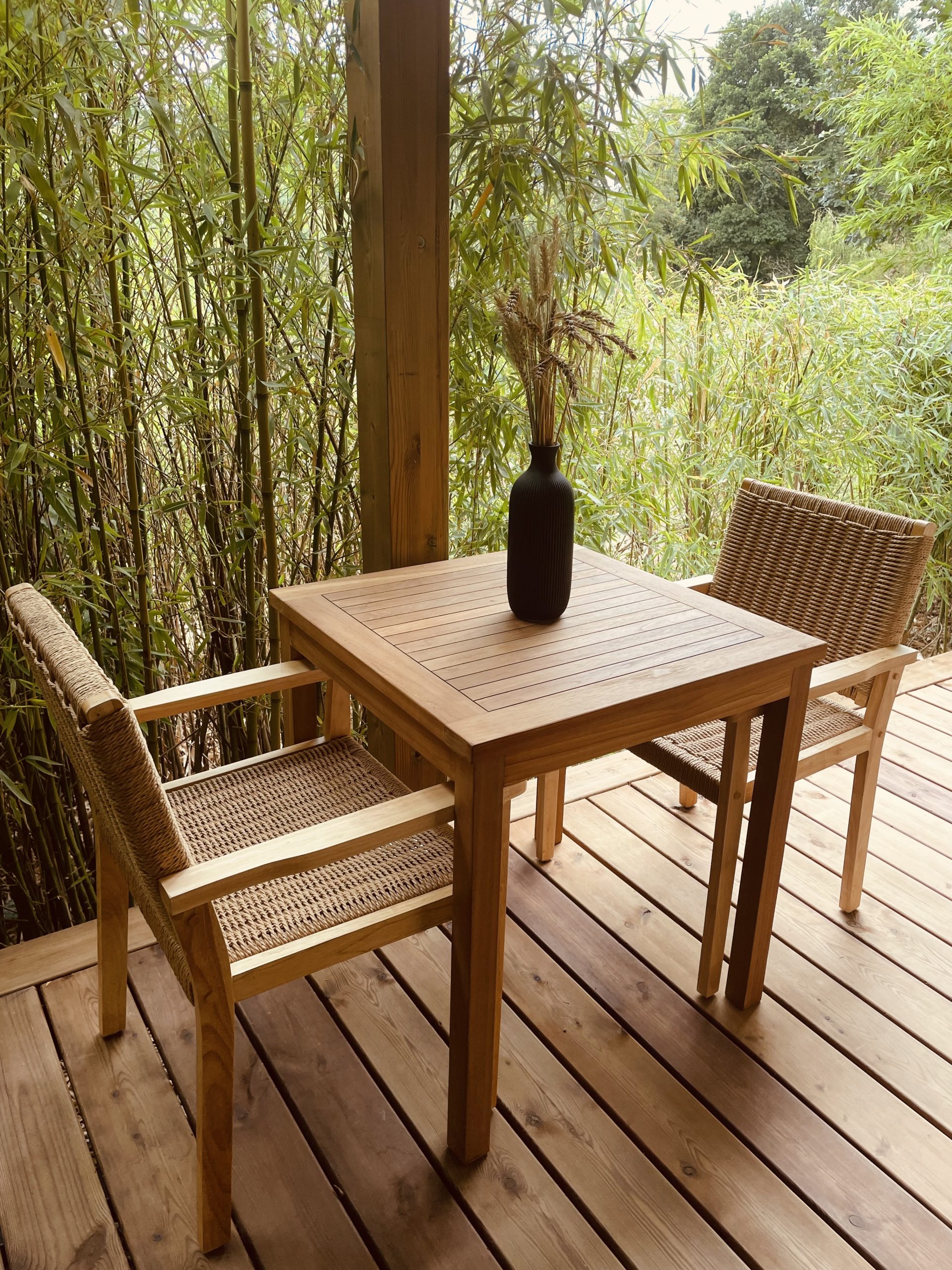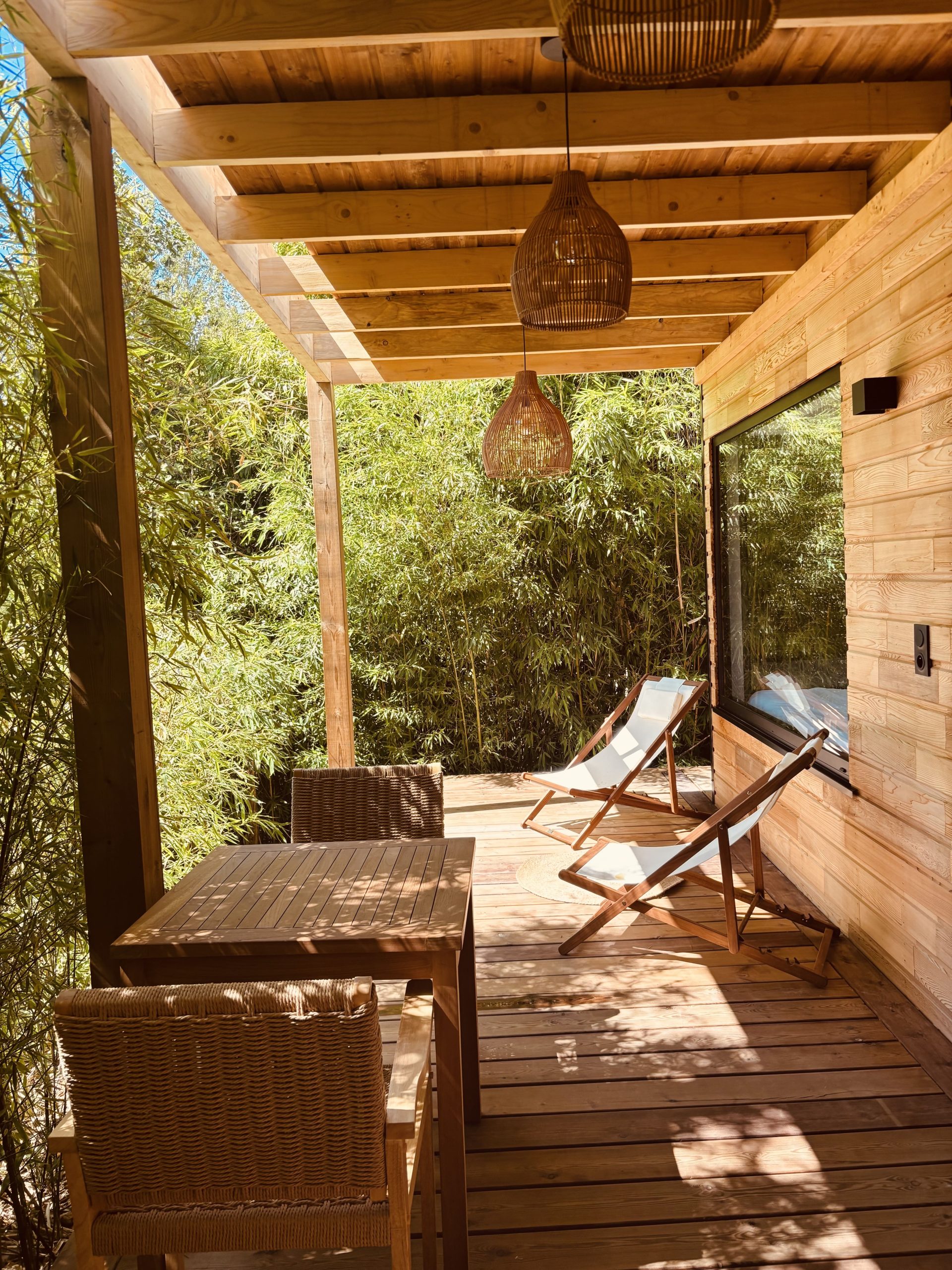 Pergola couverte intimiste pour savourer vos petits déjeuners face à la nature.