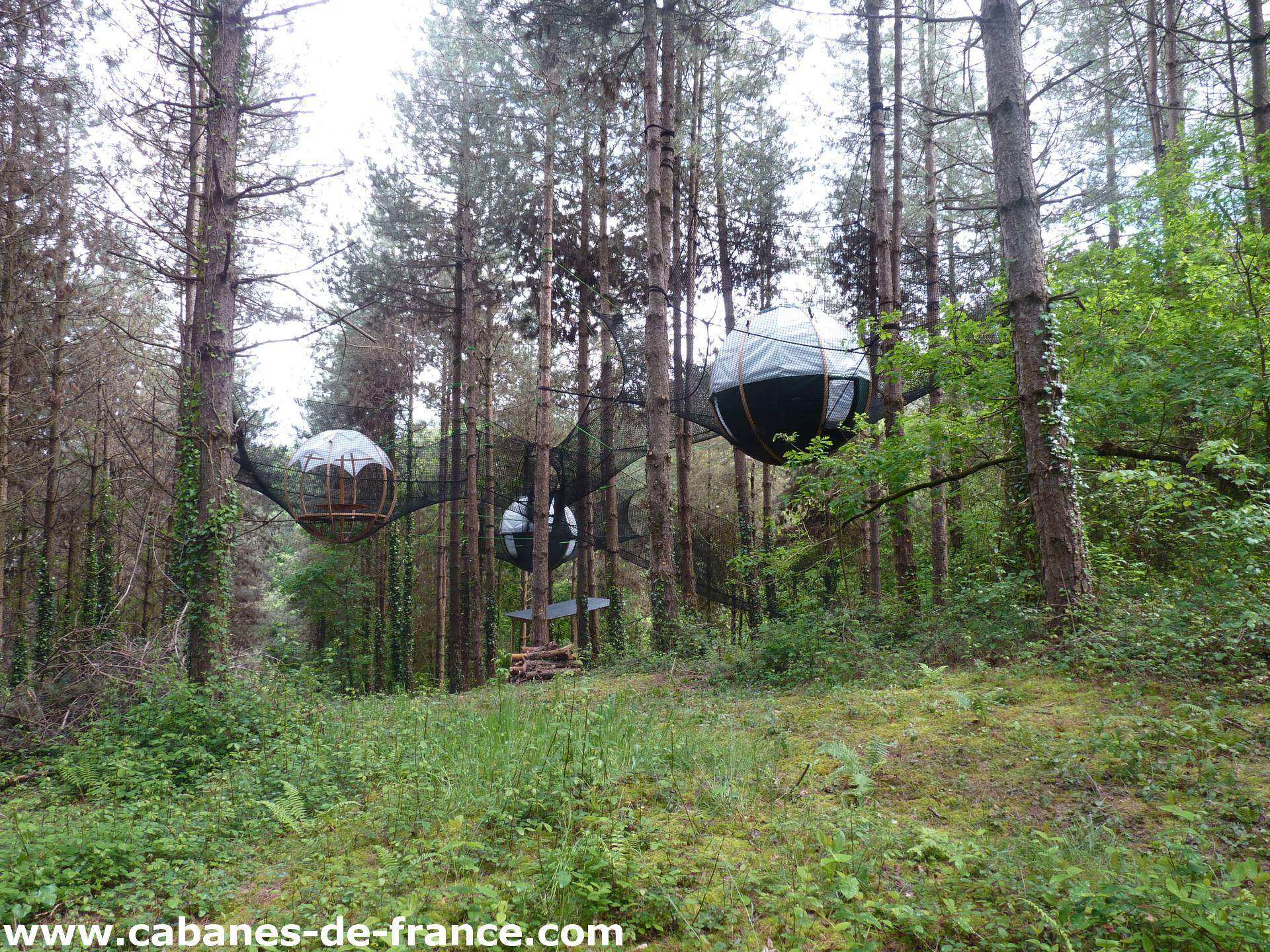 Accrochés entre 5 et6m de hauteur, on accède facilement au Nid au moyen de filets tendus entre les pins depuis le sol. Chaque nid peut accueillir 2 personnes, ou même un couple avec un enfant de trois à dix ans.( Pour les enfants en bas-âge ou pour deux enfants contactez-nous pour un accord préalable). Recouvert de toile de  taud de marine doublée, chaque Nid, de 3m de diamètre, est équipé d’un matelas de grande qualité et d’une couette sur mesure, pour un confort exceptionnel. Au matin, les oiseaux tout proches vous réveilleront. Ouvrez la toile du Nid et admirez la forêt de pins et toute sa faune. Autour de chaque nid un hamac géant de plus de 20 m2 vous permet d’évoluer en toute sécurité, vous n’aurez plus envie de descendre!