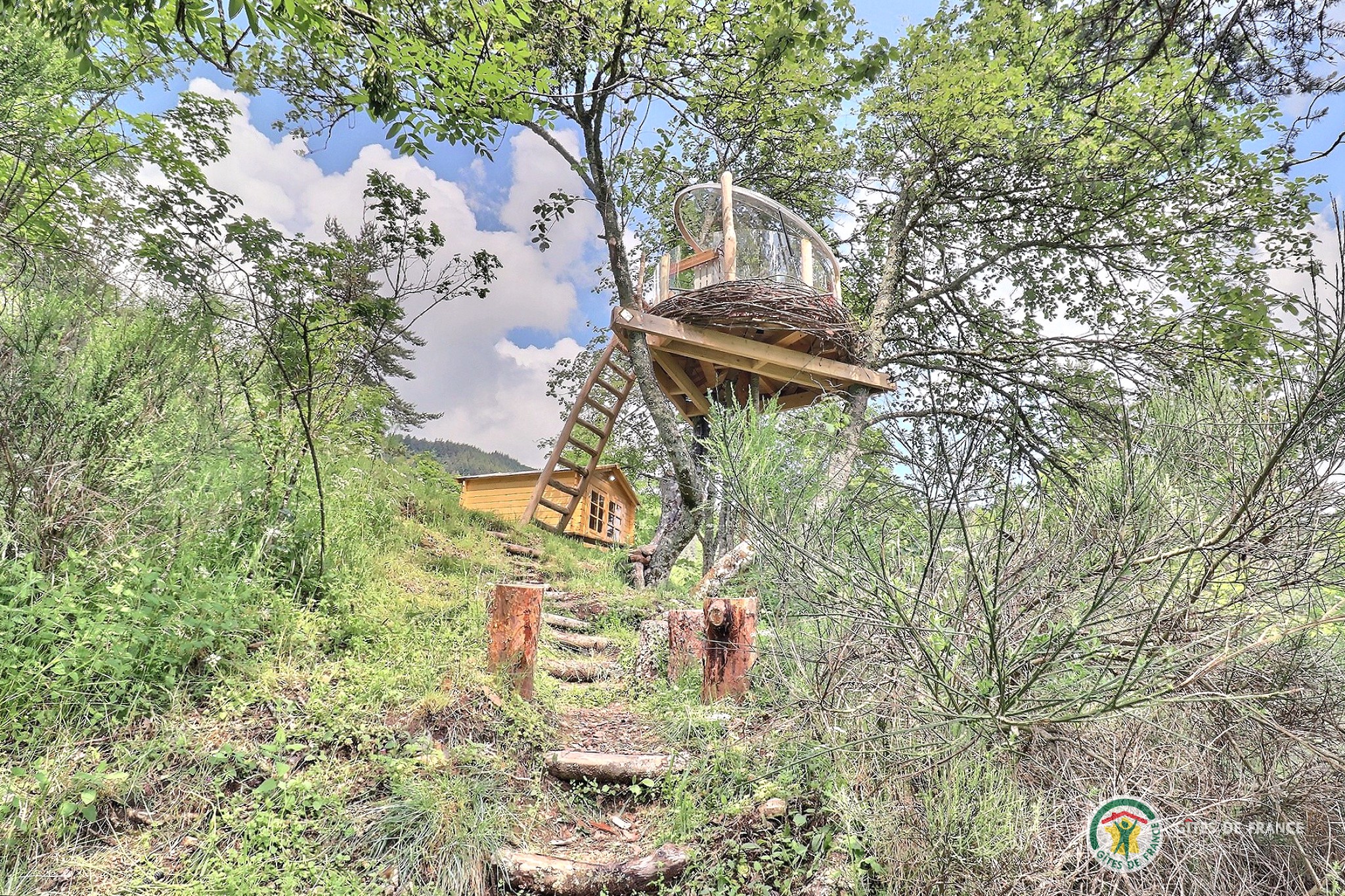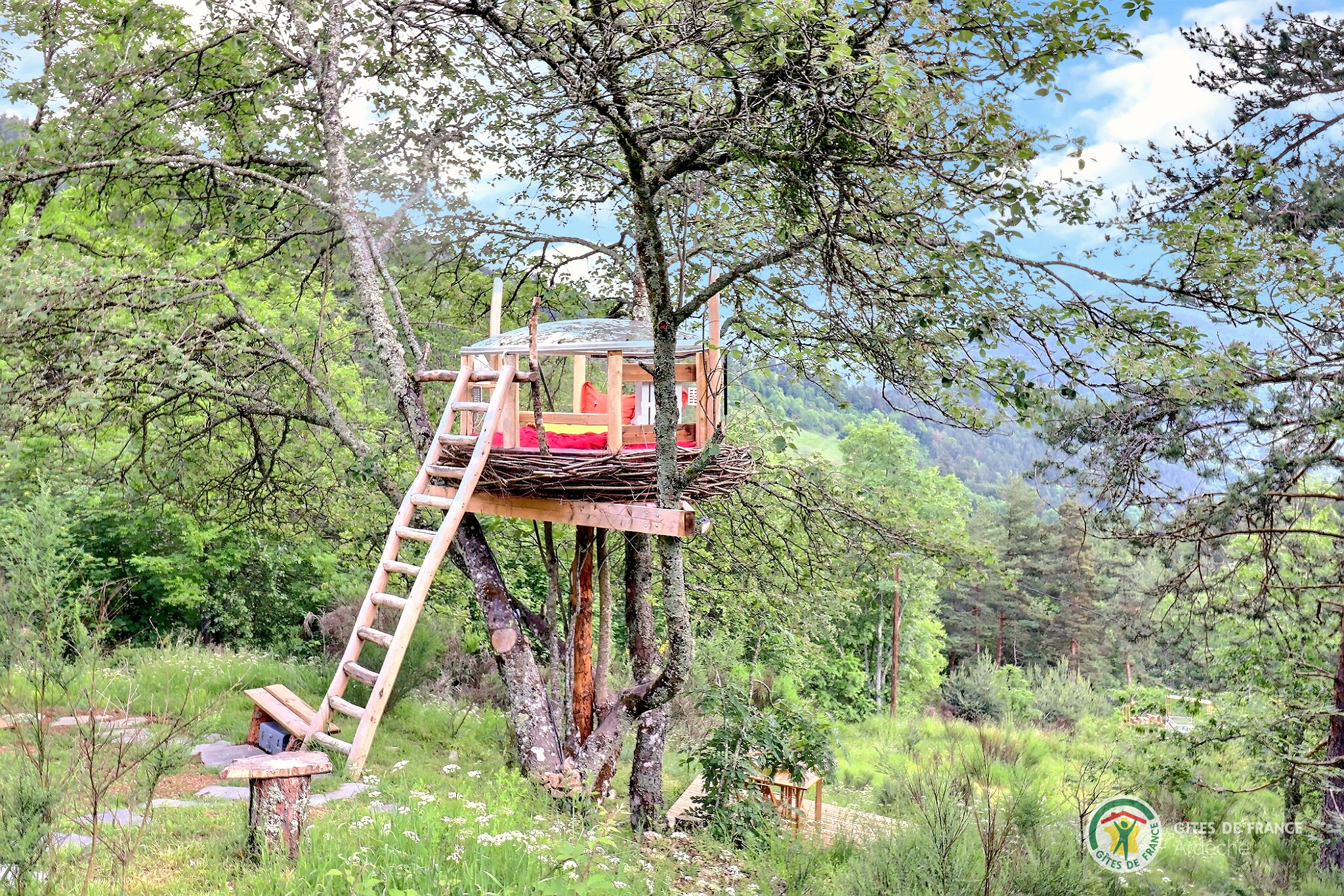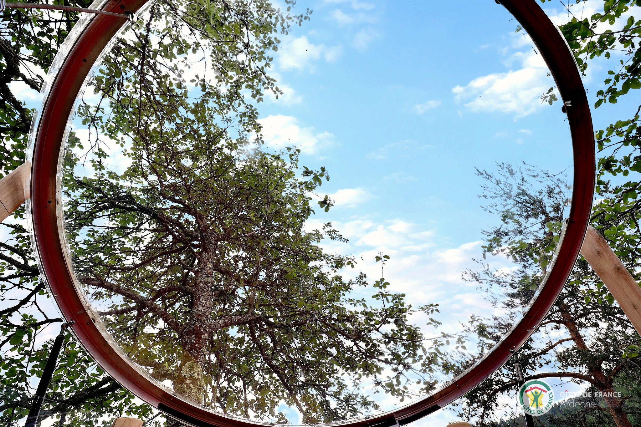 Que pensez-vous de passer une nuit en pleine nature, en haut d’un arbre, dans un nid, tel un oiseau ? C’est ce que nous vous proposons avec ce lit douillet perché et son toit panoramique pour observer les étoiles et peut-être réaliser un rêve d’enfant ! On accède à ce nid par une échelle il faut donc être à l’aise pour ce genre d’exercice. Ce nid a une forme ronde d’un diamètre de 2 mètres et une hauteur de 1 mètre on peut s’asseoir et dormir très facilement à deux (minimum un adulte et enfant de plus de 12 ans).
