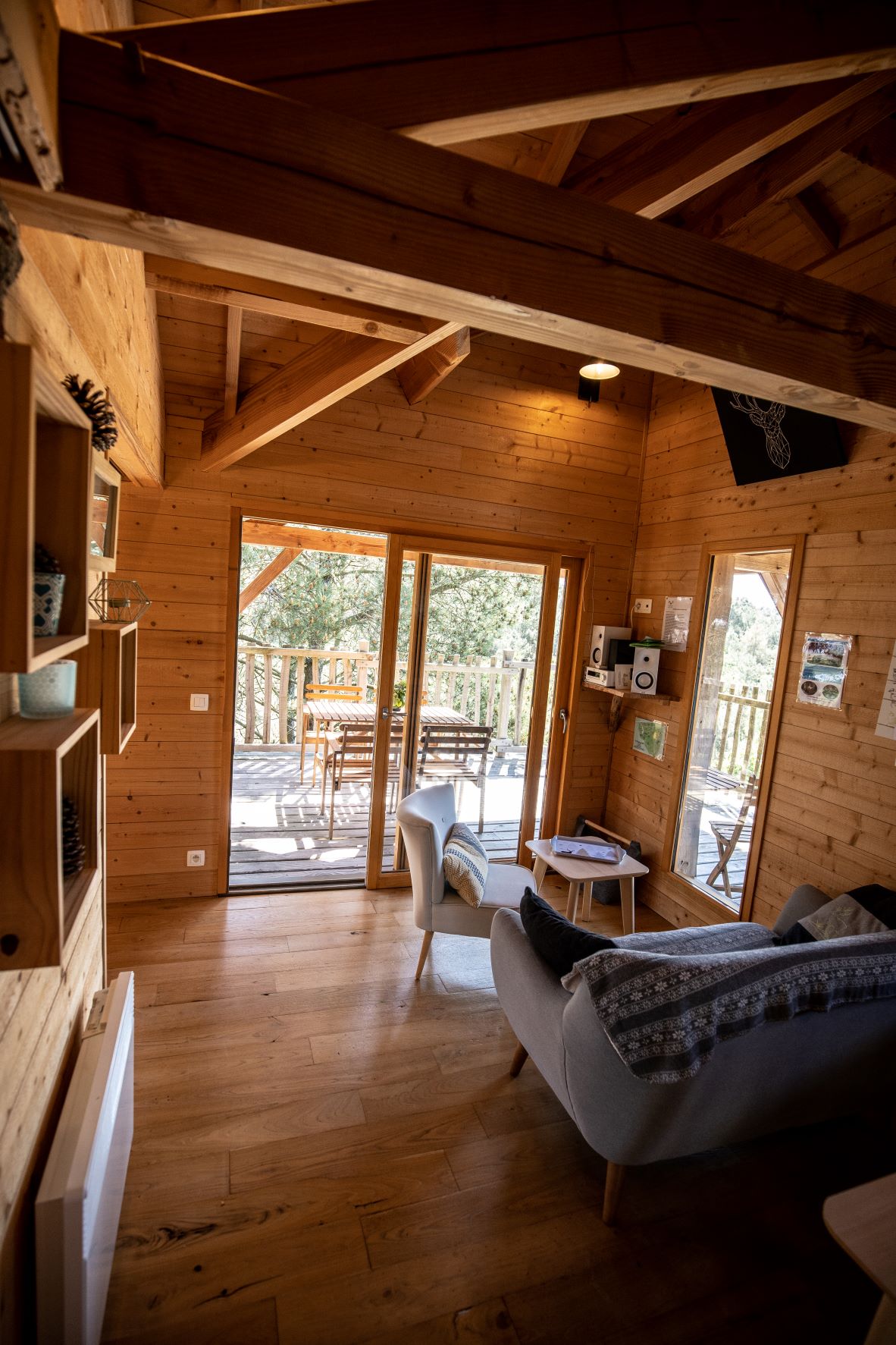 Une cabane tout de bois vêtue, perchée en haut de la falaise avec une vue imprenable sur notre vallée 30 mètres plus bas… Vous serez transporté dans un univers apaisant aux couleurs et formes en harmonie avec la nature.