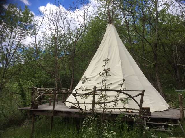 Un bivouac de charme en grand Tipi pour du glamping dans la forêt, au dessus de la rivière, pour les amoureux de la nature.