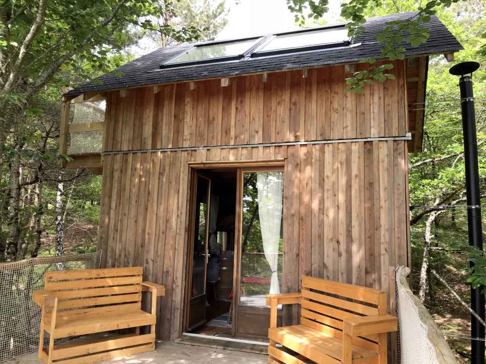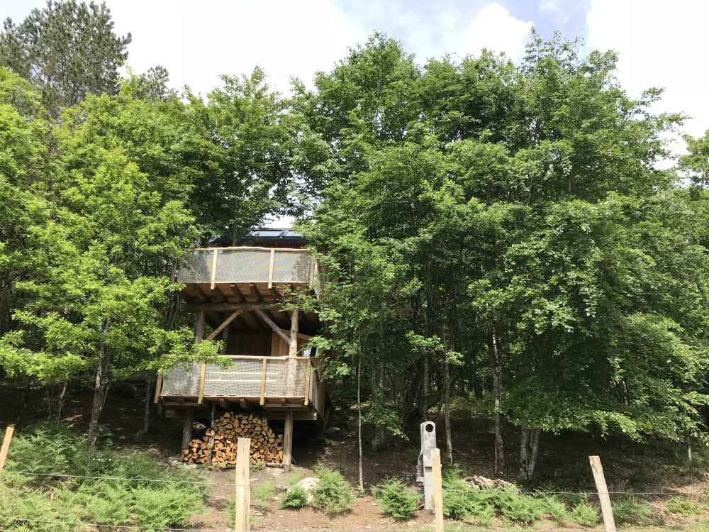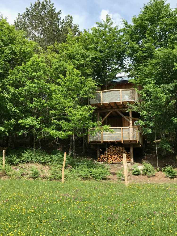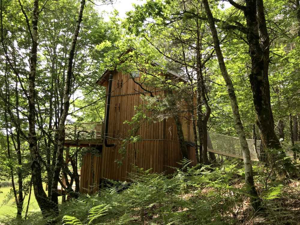 Construite exclusivement avec des essences de bois locales (mélèze, douglas, châtaignier, chêne), la cabane « Les Cent Ciels » vous accueille au cœur d’un jeune bois de feuillus. Son architecture, au plus près des arbres, vous permettra de profiter pleinement de la nature, d’observer la faune et la flore.