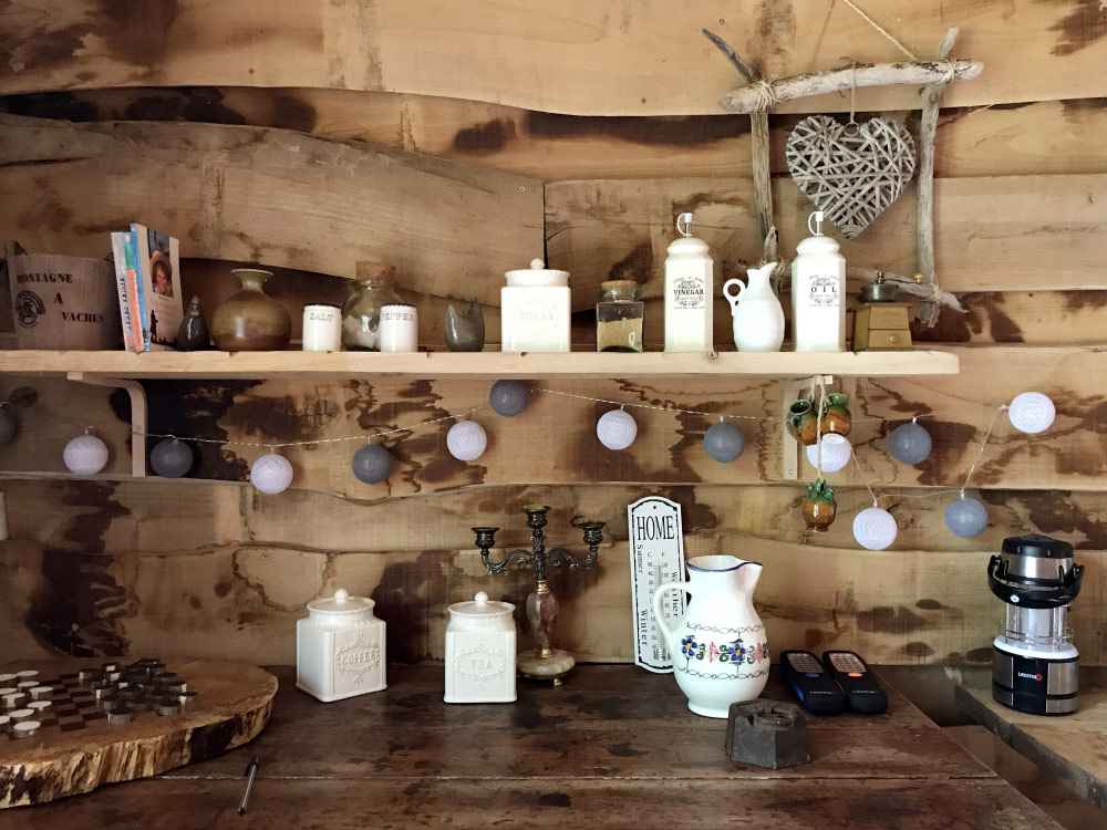 Nos cabanes sont éclairées à la bougie et avec des lampes à LED.