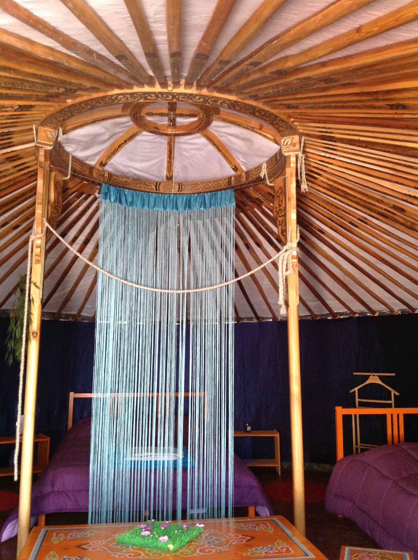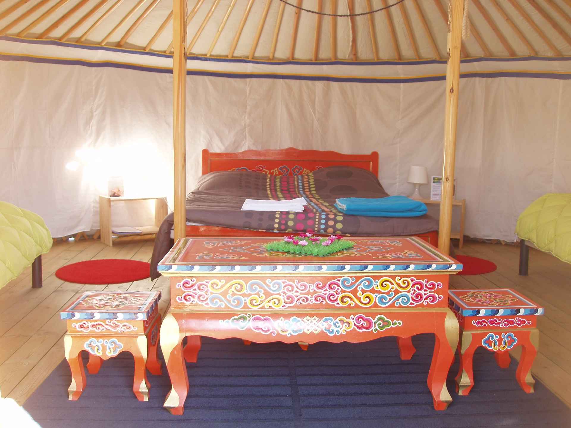 Yourtes Mongoles de 28 m² (4 couchages), installées à proximité des commodités et équipées de :