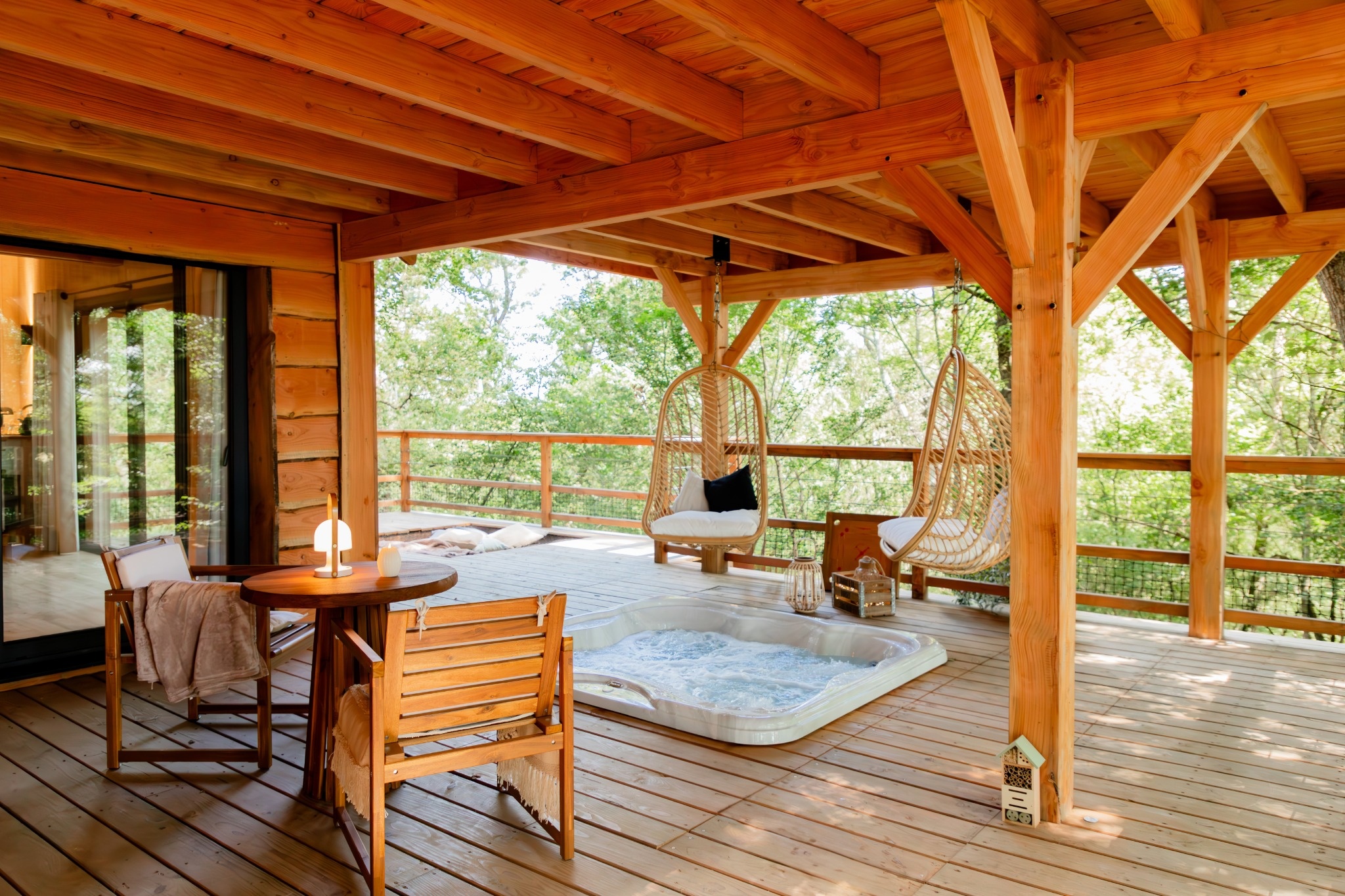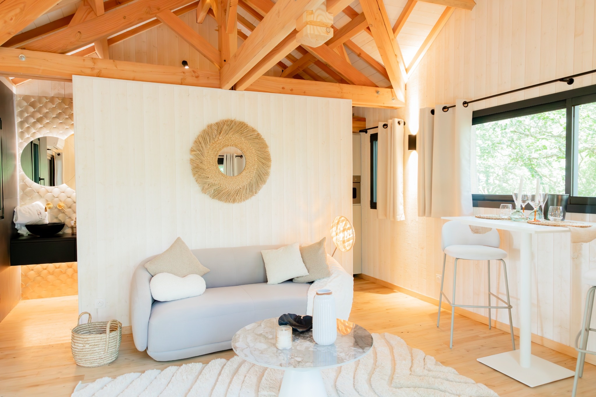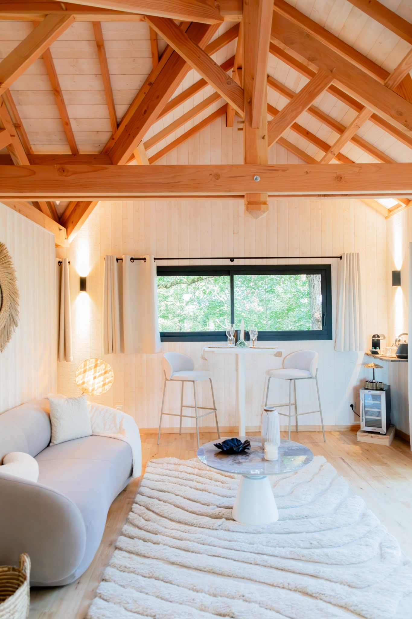 L’Étoilée vous offre une aventure unique avec un spa, un filet suspendu, et un lit coulissant pour des nuits magiques sous les étoiles. Sa chaleureuse ambiance intérieure favorise relaxation et intimité. Chaque détail de L’Étoilée transforme votre séjour en un spectacle céleste féerique.
