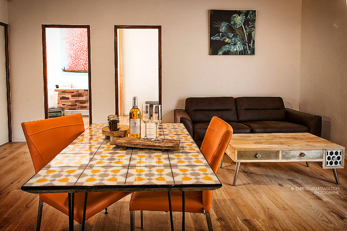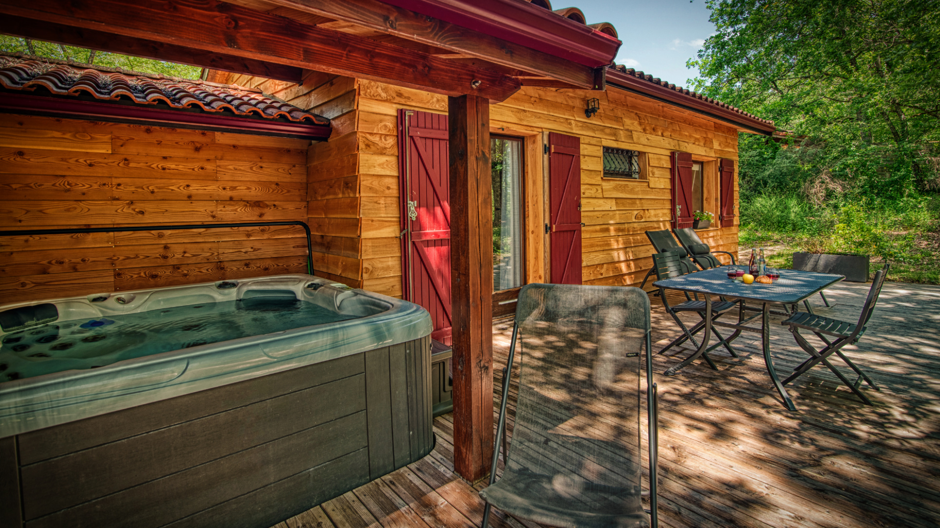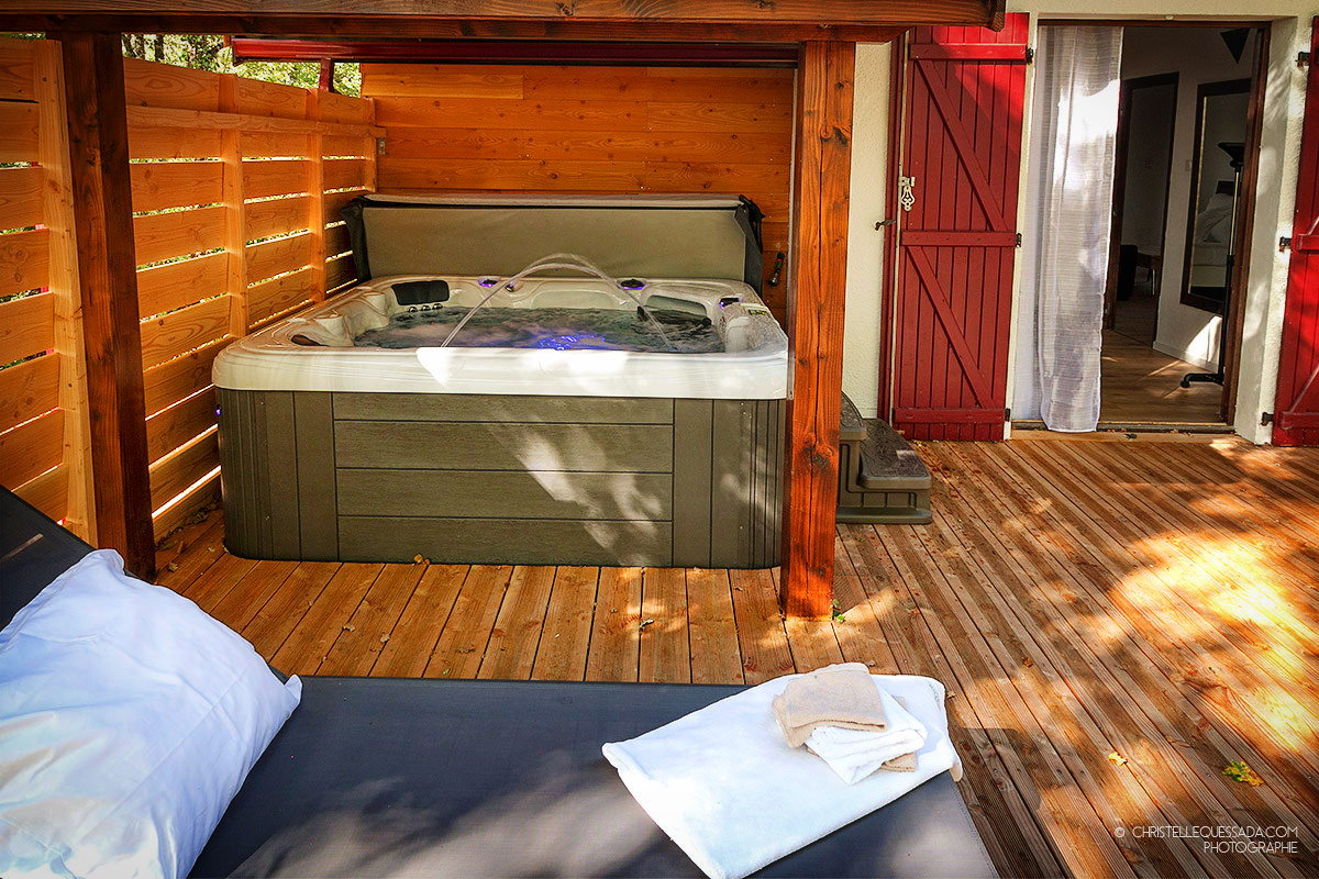 De nombreux éléments de confort sont prévus pour un maximum de détente : spa couvert et privatif, bains de soleil, salons de jardin, hamacs suspendus entre les chênes….