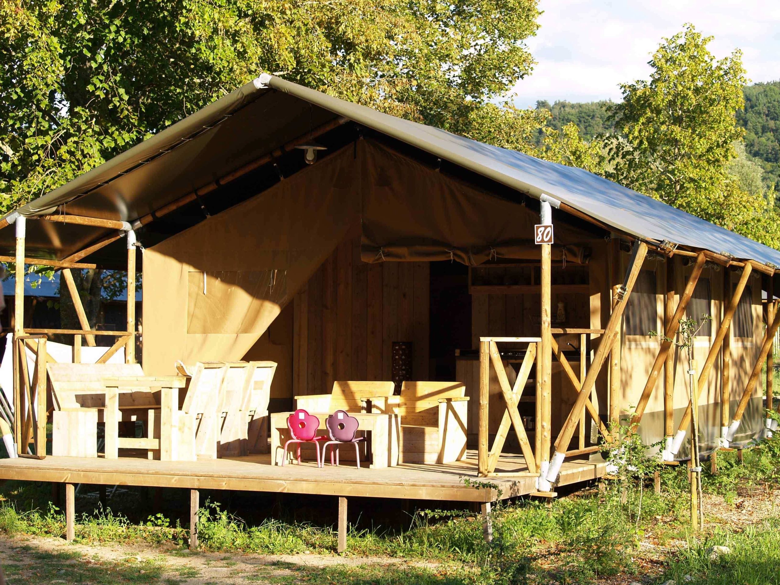 Besoin de dépaysement ? Nos lodges Safari, à la déco soignée sont installées sur des emplacements de 200 à 300 m². De votre terrasse (15m²), vous avez vue sur le Château d’Artias et ses orgues basaltiques qui tombent jusque dans la Loire.