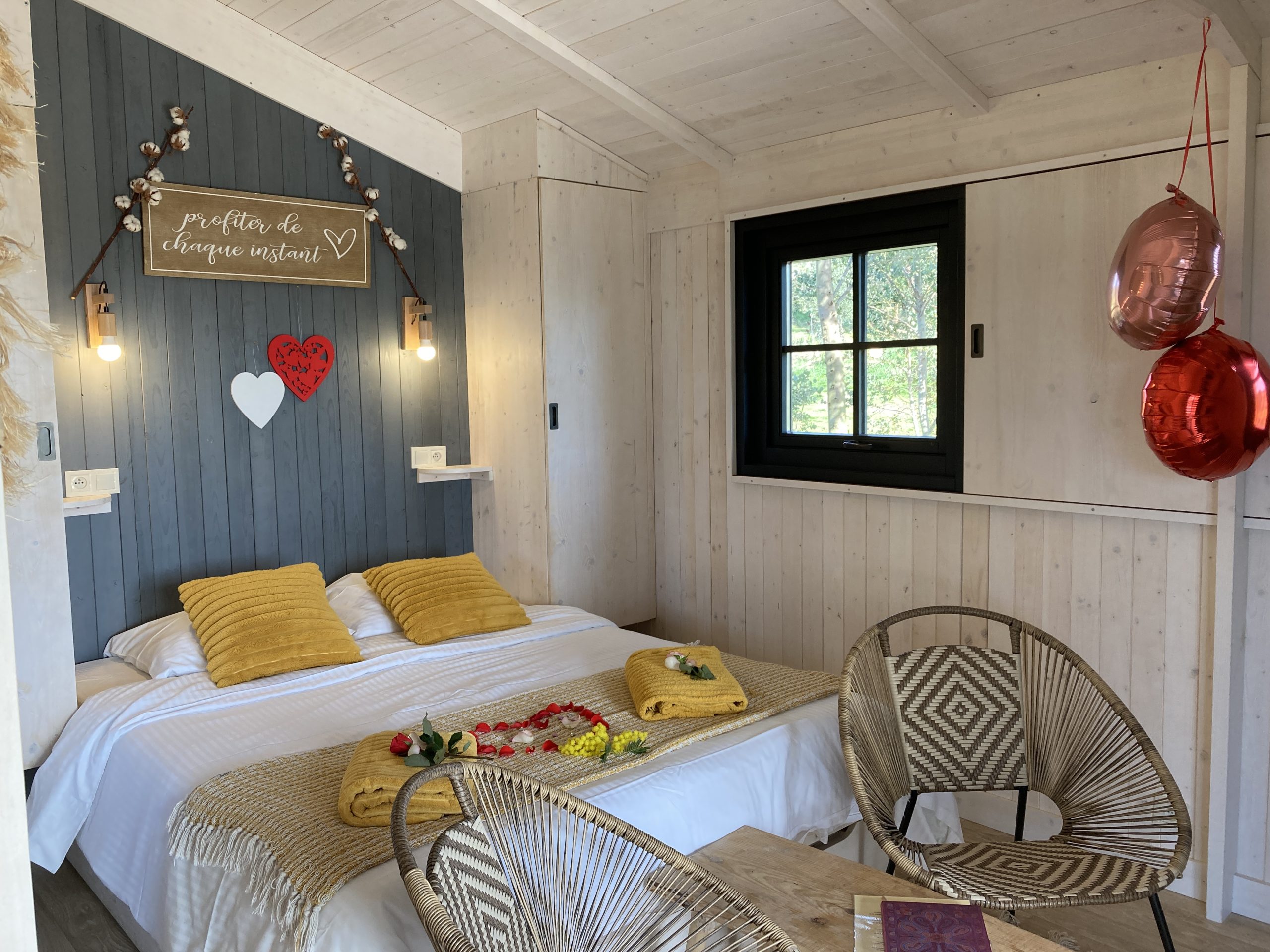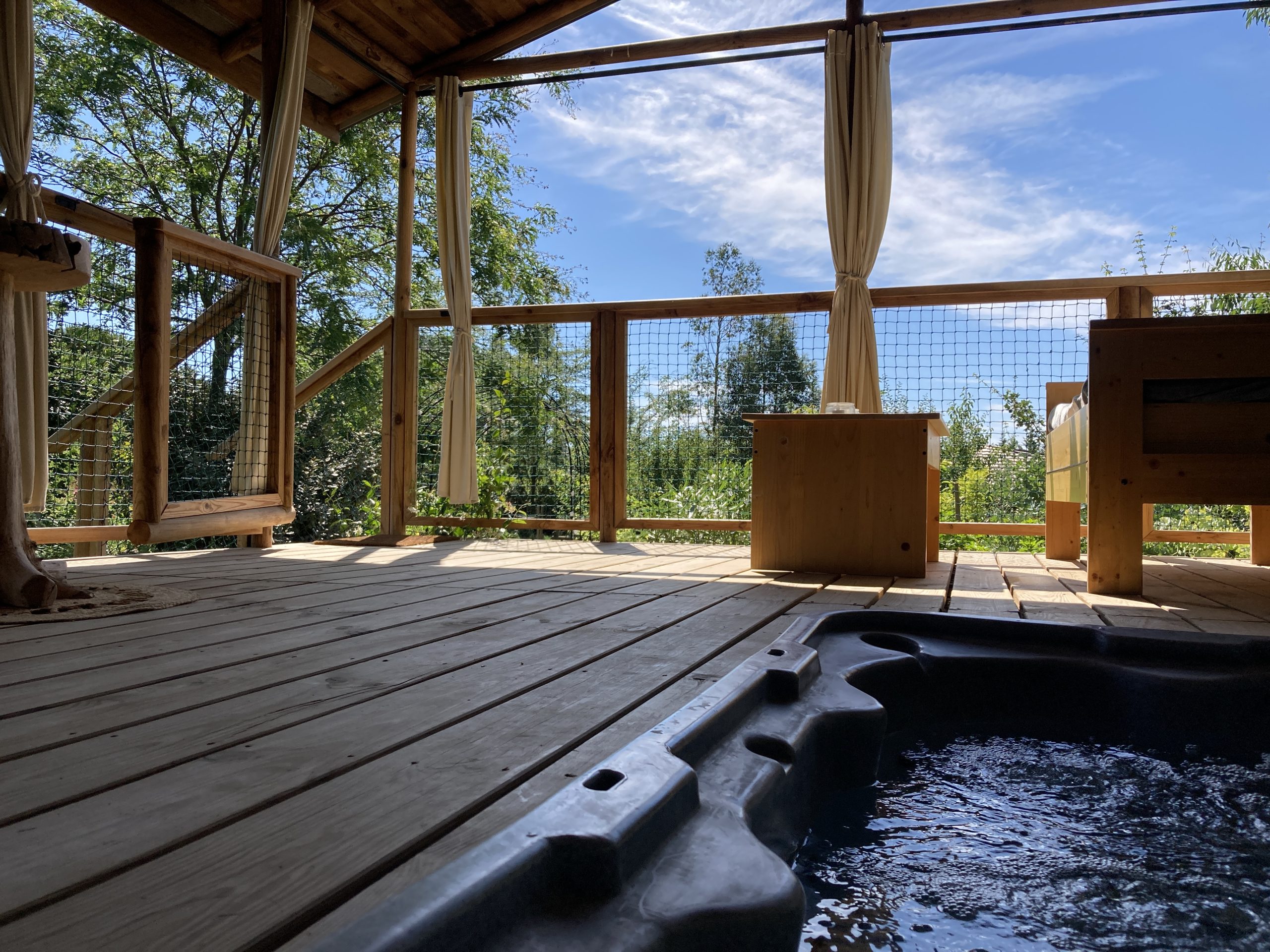 Au coeur du domaine écoresponsable Trésors de campagne, découvrez notre nouvel hébergement insolite et ultra cocooning , la Cabane sur pilotis Miel et coton. Un vrai nid d’amour pour cette” love-room” dotée d’un jacuzzi privatif , à fleur de terrasse et bien à l’abri des regards.