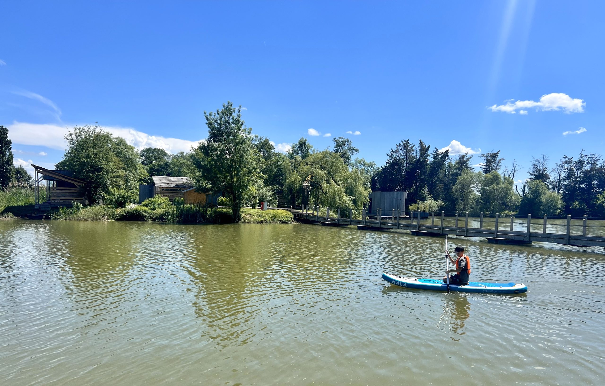 Barque privative attenante à la plateforme flottante. Profites en pour aller se vous baladez librement sur l’étang.