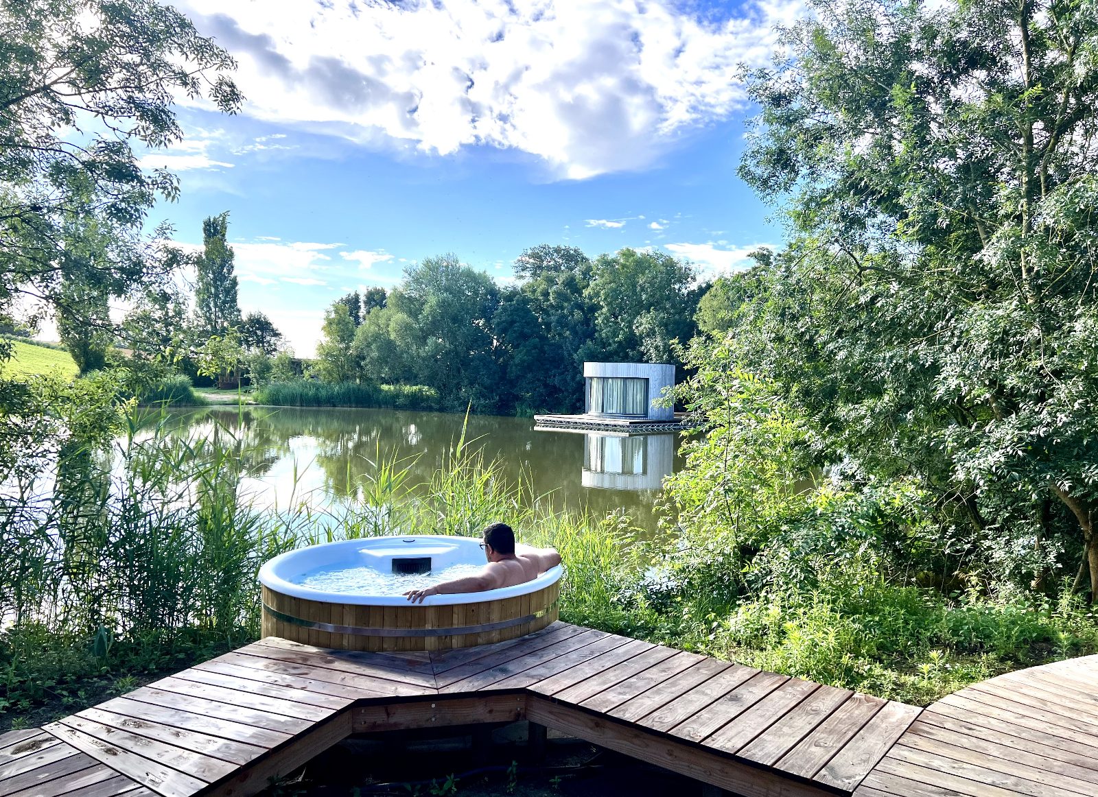 On adore le jacuzzi et le sauna privatif, à l’abri des regards cachés derrière la jolie végétation naturelle.