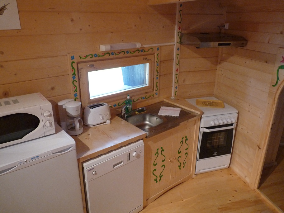 • cuisine équipée avec vaisselle complète pour 6 personnes : cuisinière (4 plaques électriques et four), four micro-ondes, lave-vaisselle, cafetière, grille-pain et réfrigérateur avec compartiment freezer salle d’eau avec lavabo, douche et WC chauffage et électricité