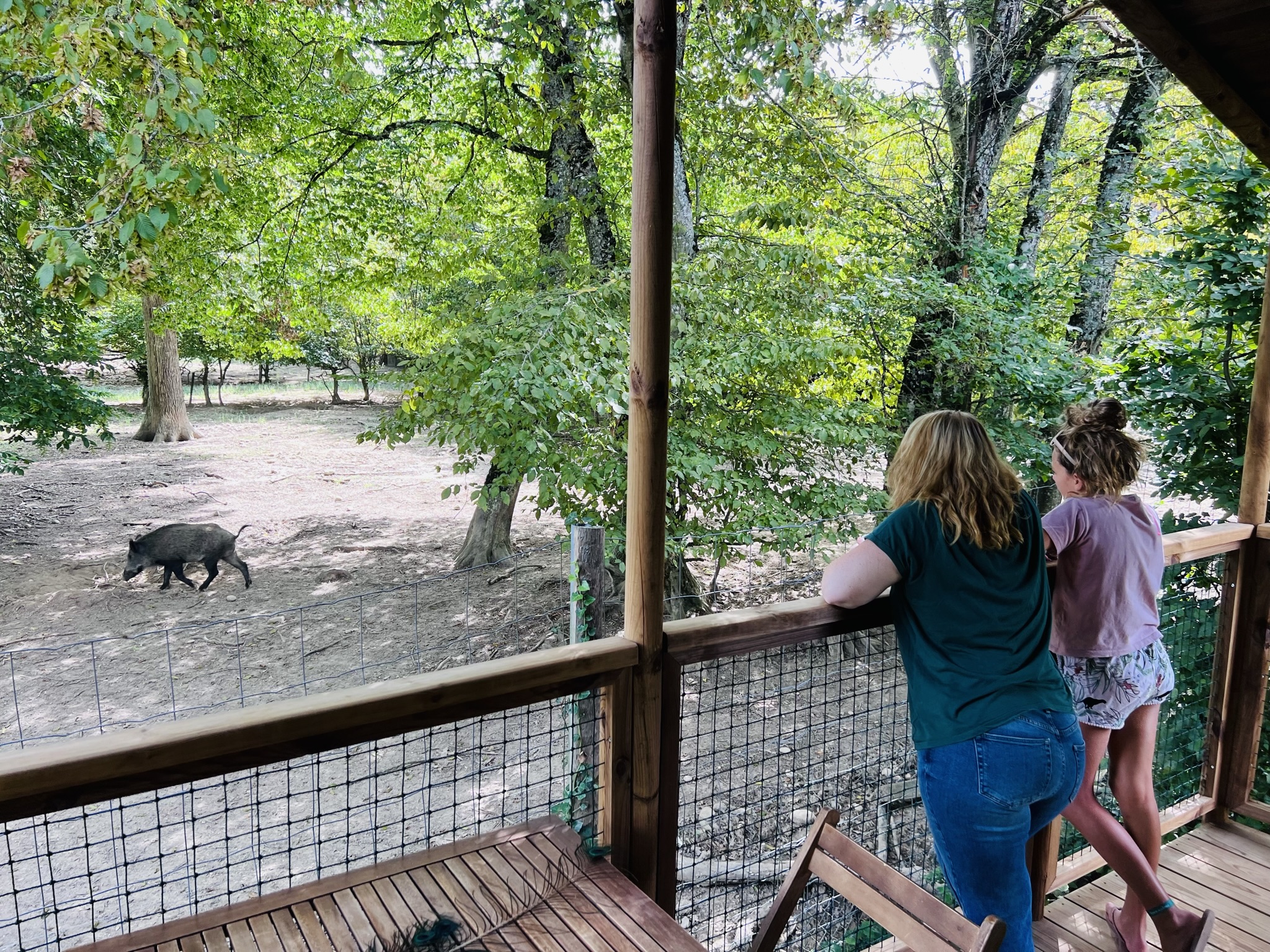 Idéalement située, à seulement 2min du parking de la zone animalière, vous découvrirez rapidement votre lodge insolite ainsi que les animaux qui passeront la nuit avec vous. Sangliers laies et marcassins déambuleront juste sous vos yeux dans l’immense parc devant votre terrasse. Splendide, aménagée avec table et chaises ainsi que des transats, qui vous invitent à la détente absolue.
