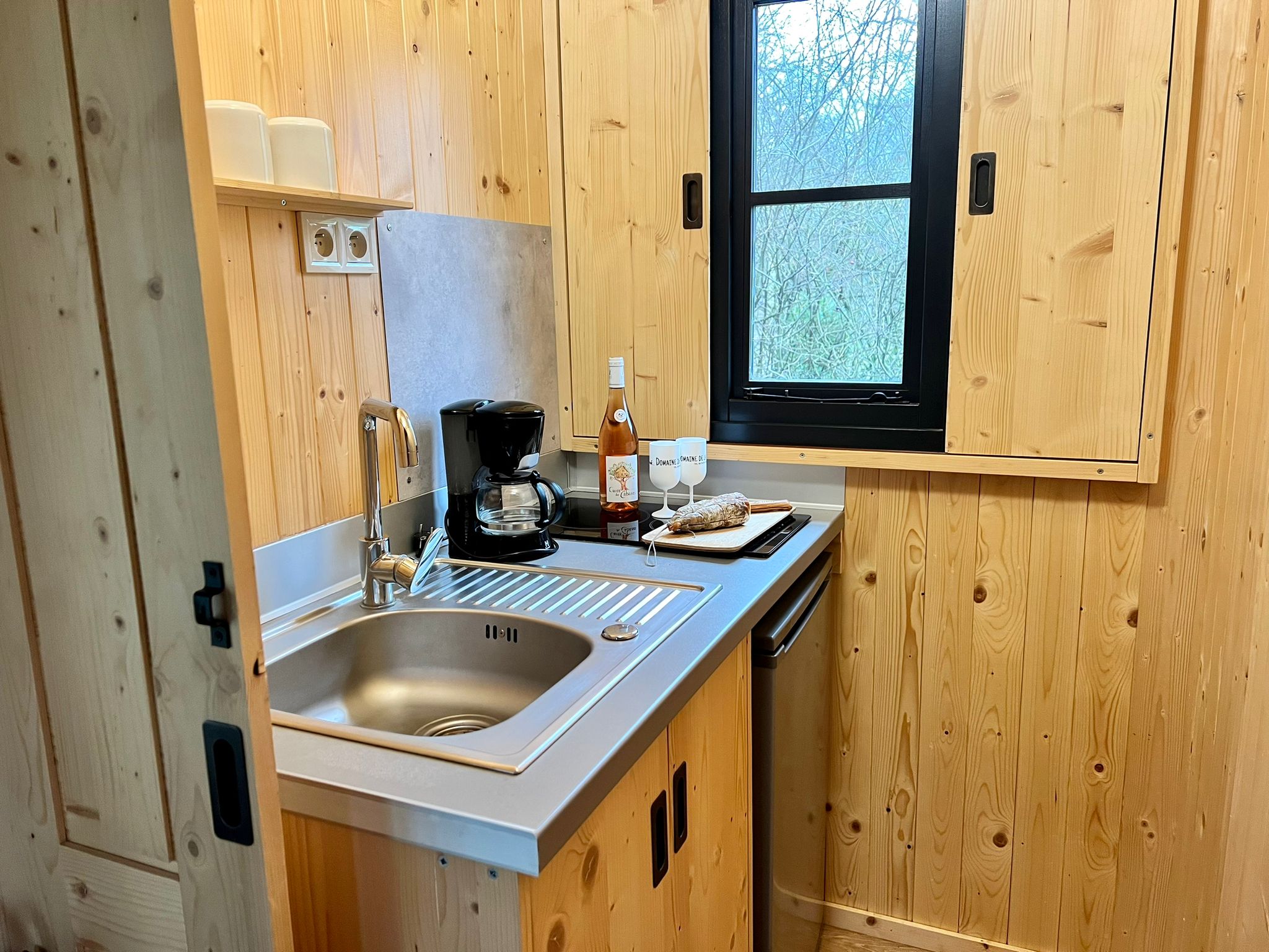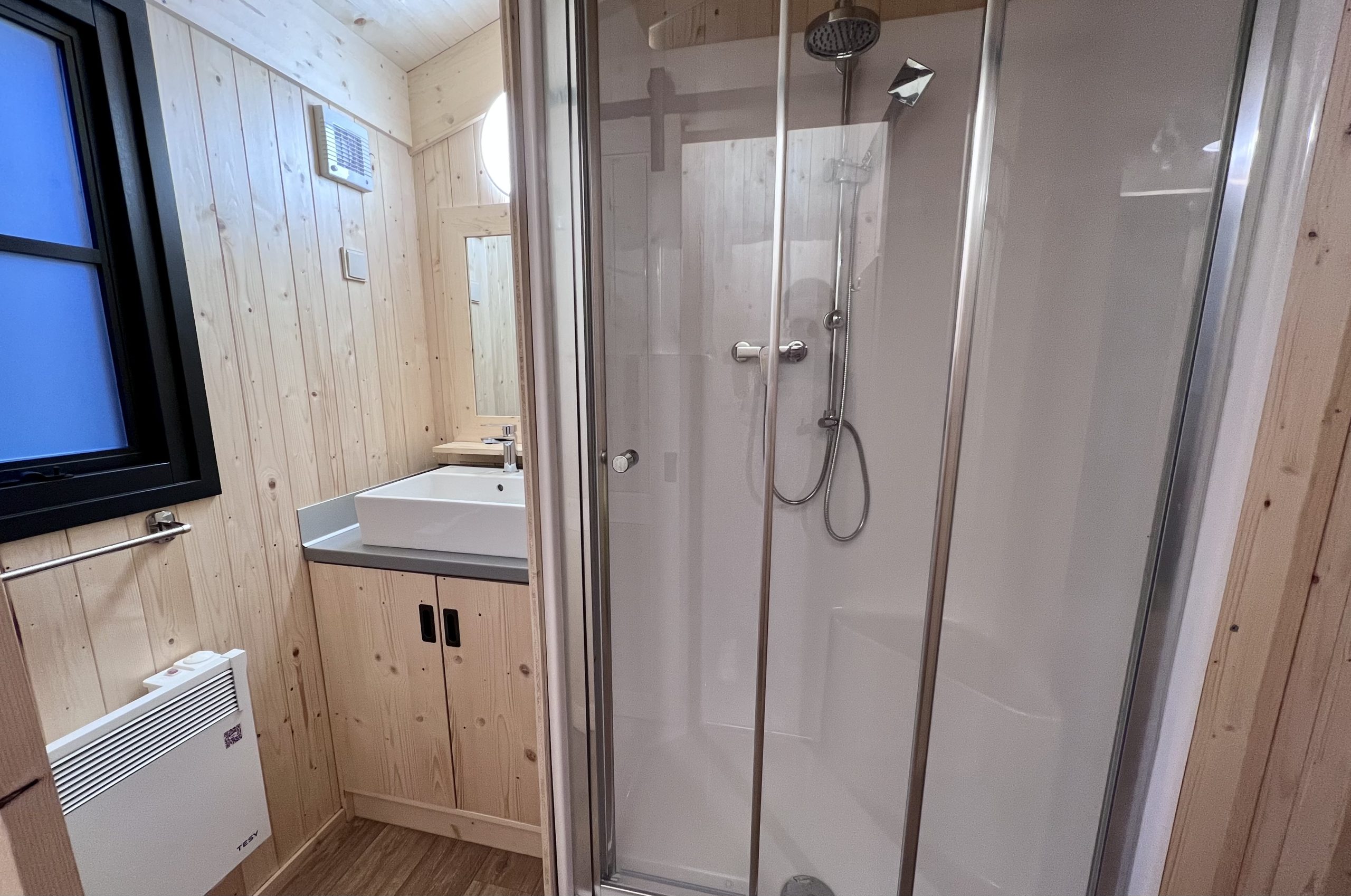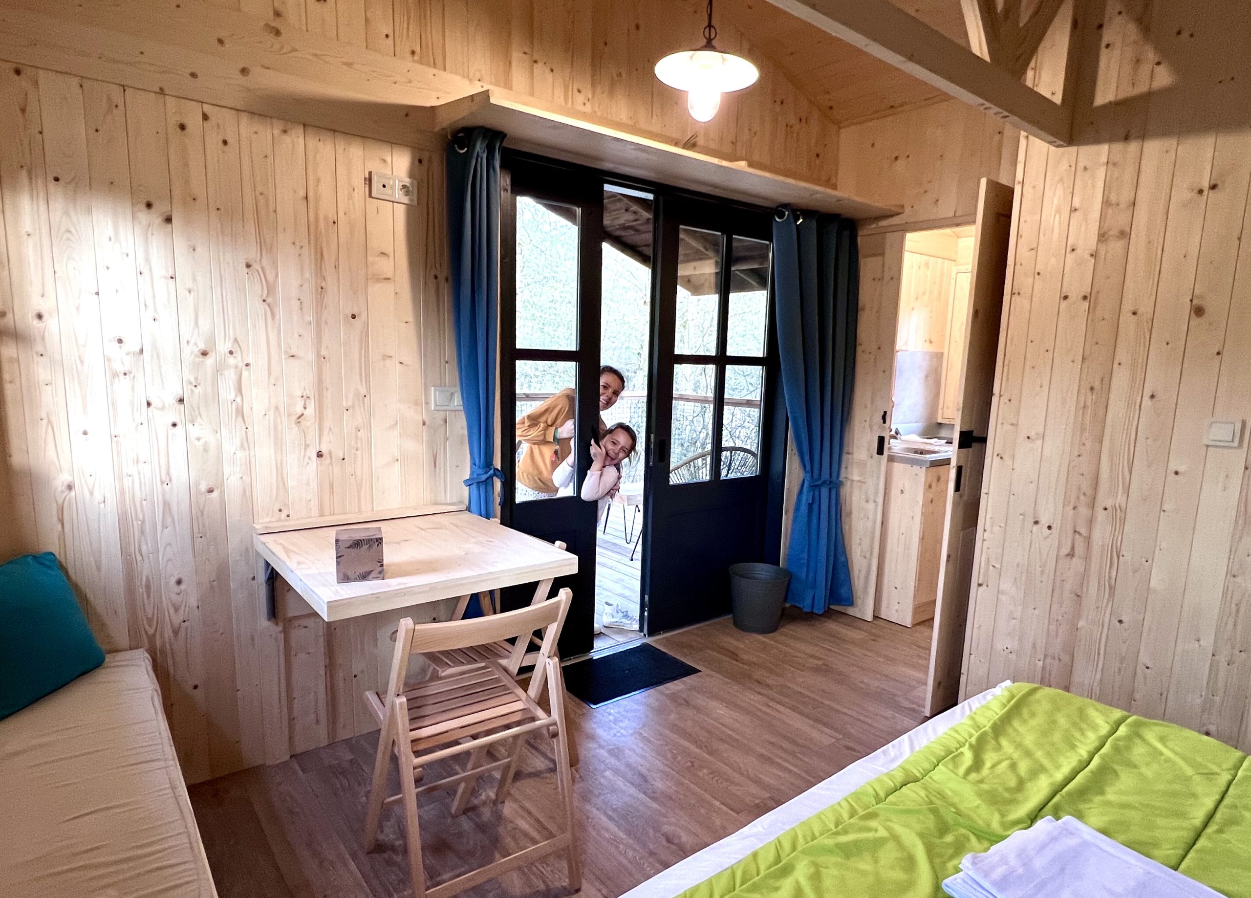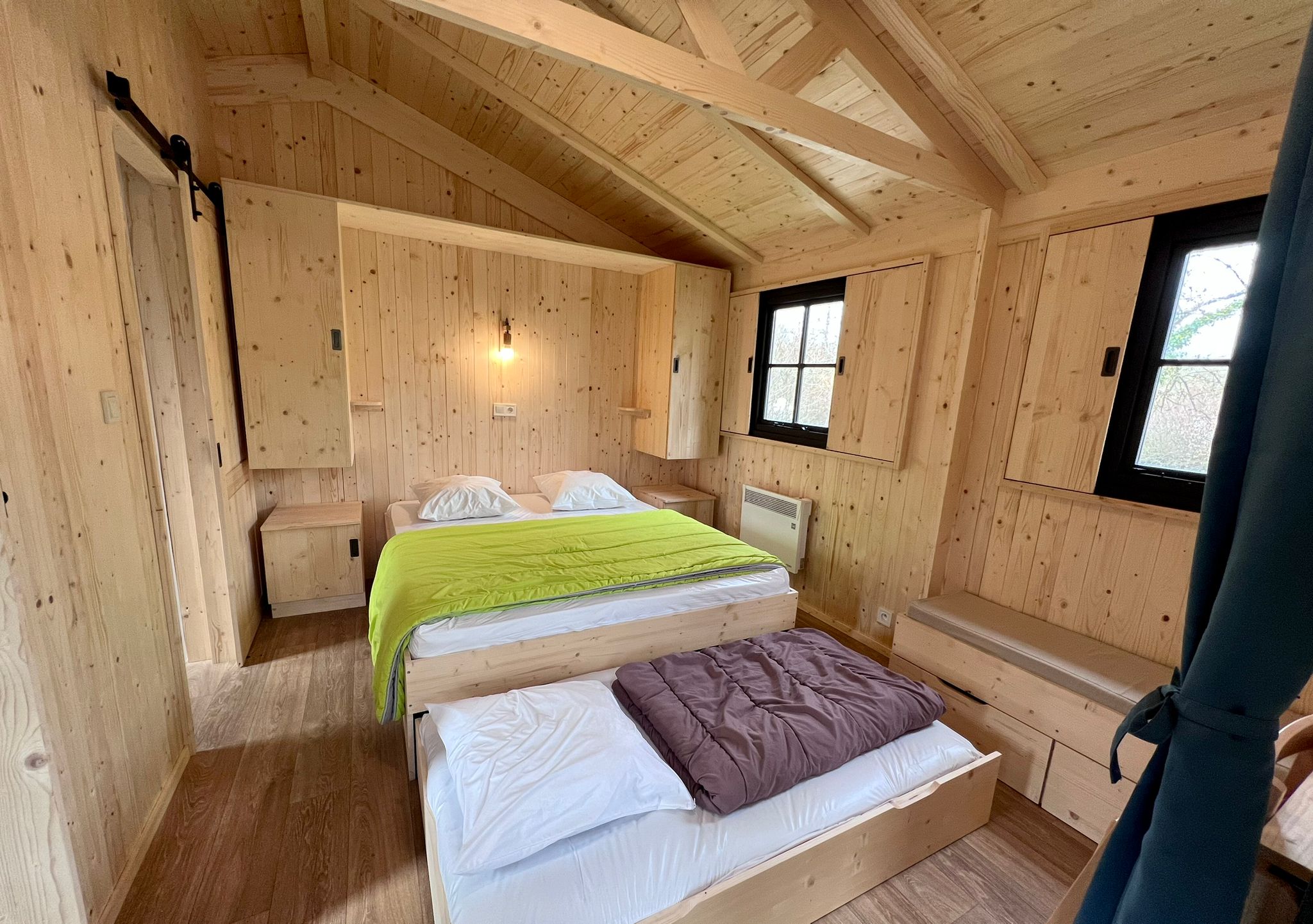 Cabane trio en gamme luxe avec sa propre salle de bain et petite kitchenette pour votre confort.