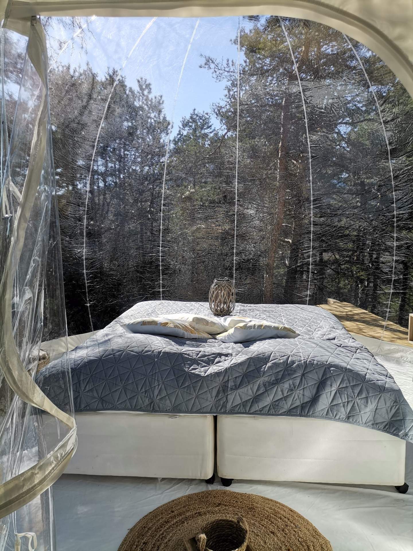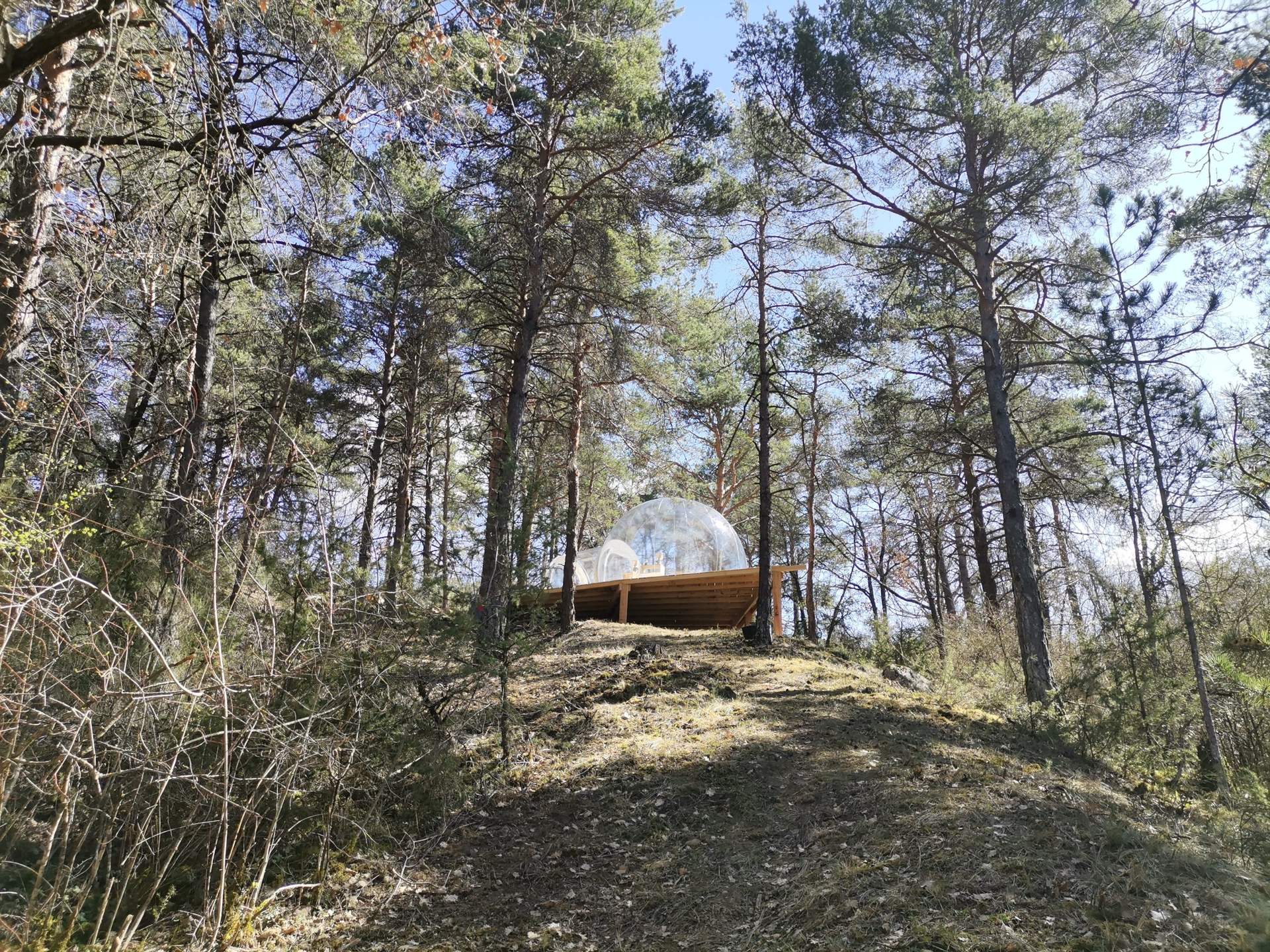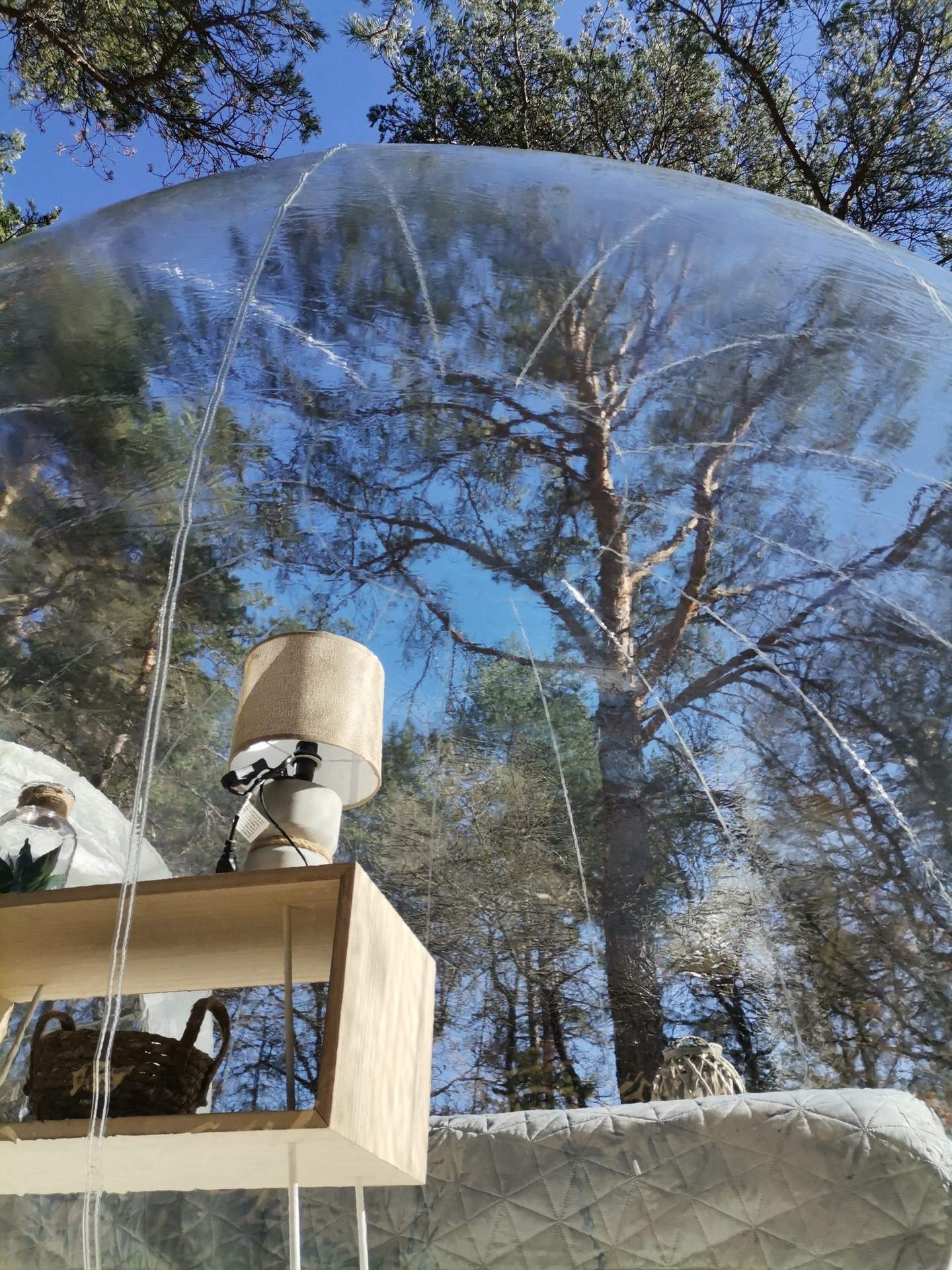 Cette nouvelle bulle entièrement transparente vous surprendra par son emplacement idéal, surplombant la forêt de chênes et pins ancestraux du domaine. Entièrement refaite pour 2025.