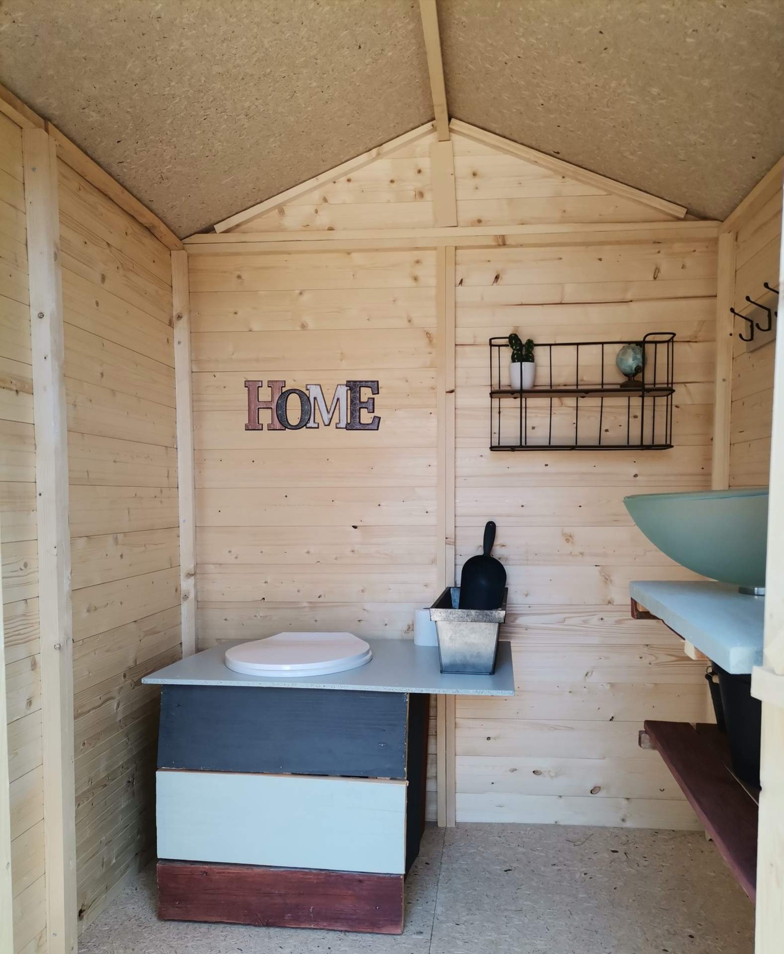 Un petit chalet privé accueillant toilettes sèches et lavabo