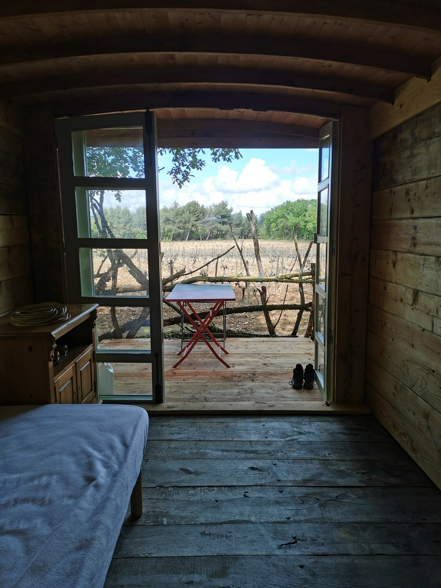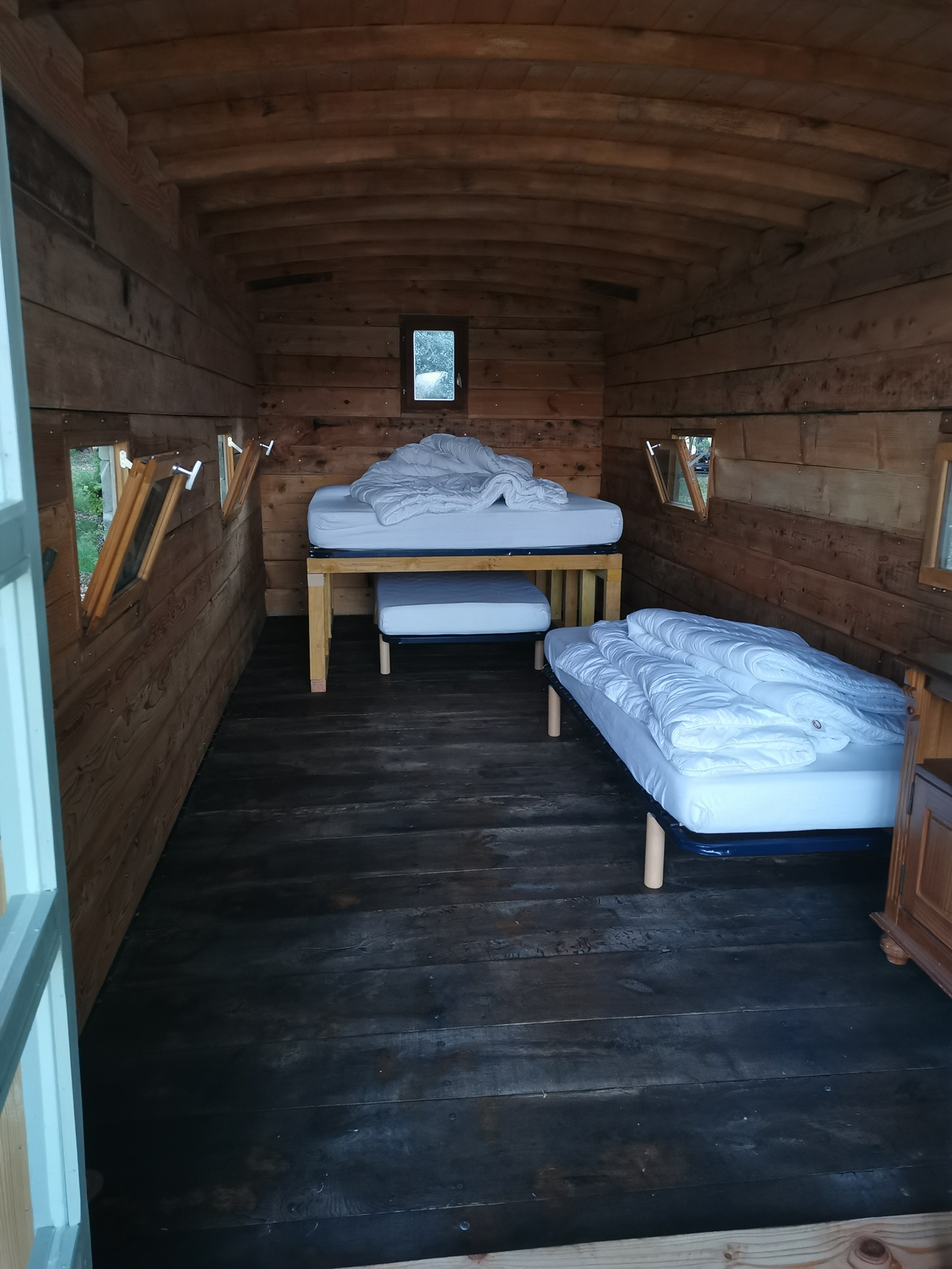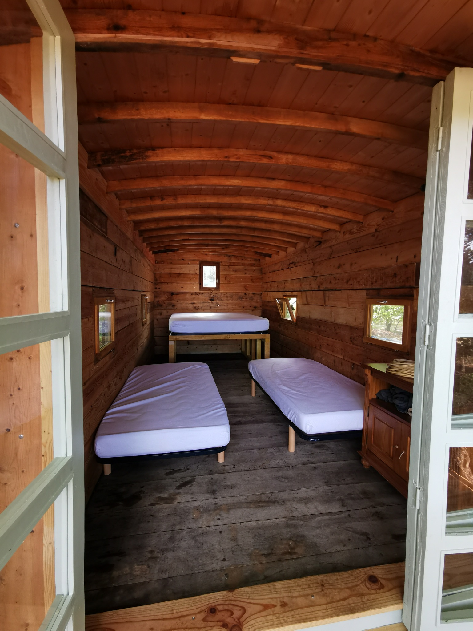Notre Roulotte contemporaine, vous invite au voyage au coeur du Luberon. Notre Roulotte peut accueillir jusqu’à 4 personnes, équipée d’un lit 160×200, et de deux lits 90 x200.