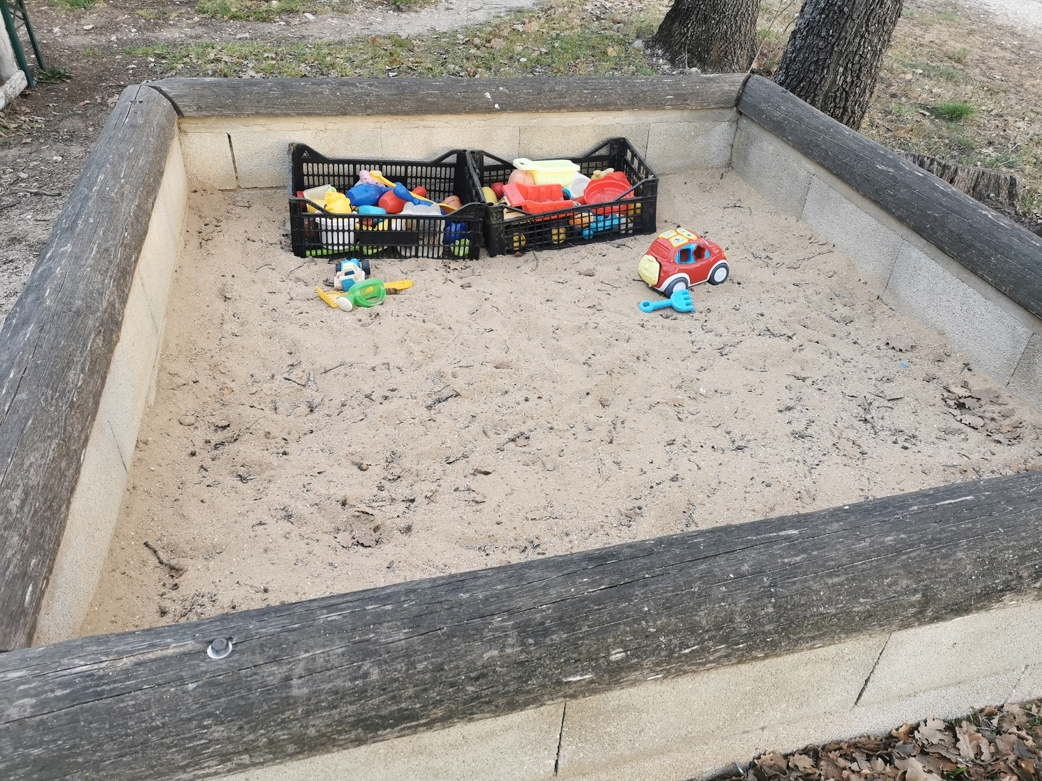 Nous avons un bac a sable pour les enfants, un terrains de pétanque pour les plus grands.