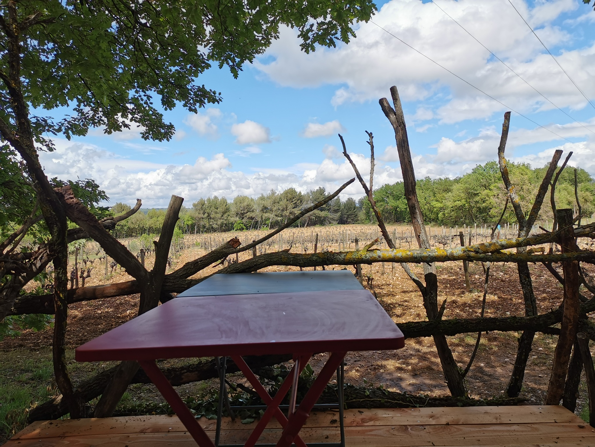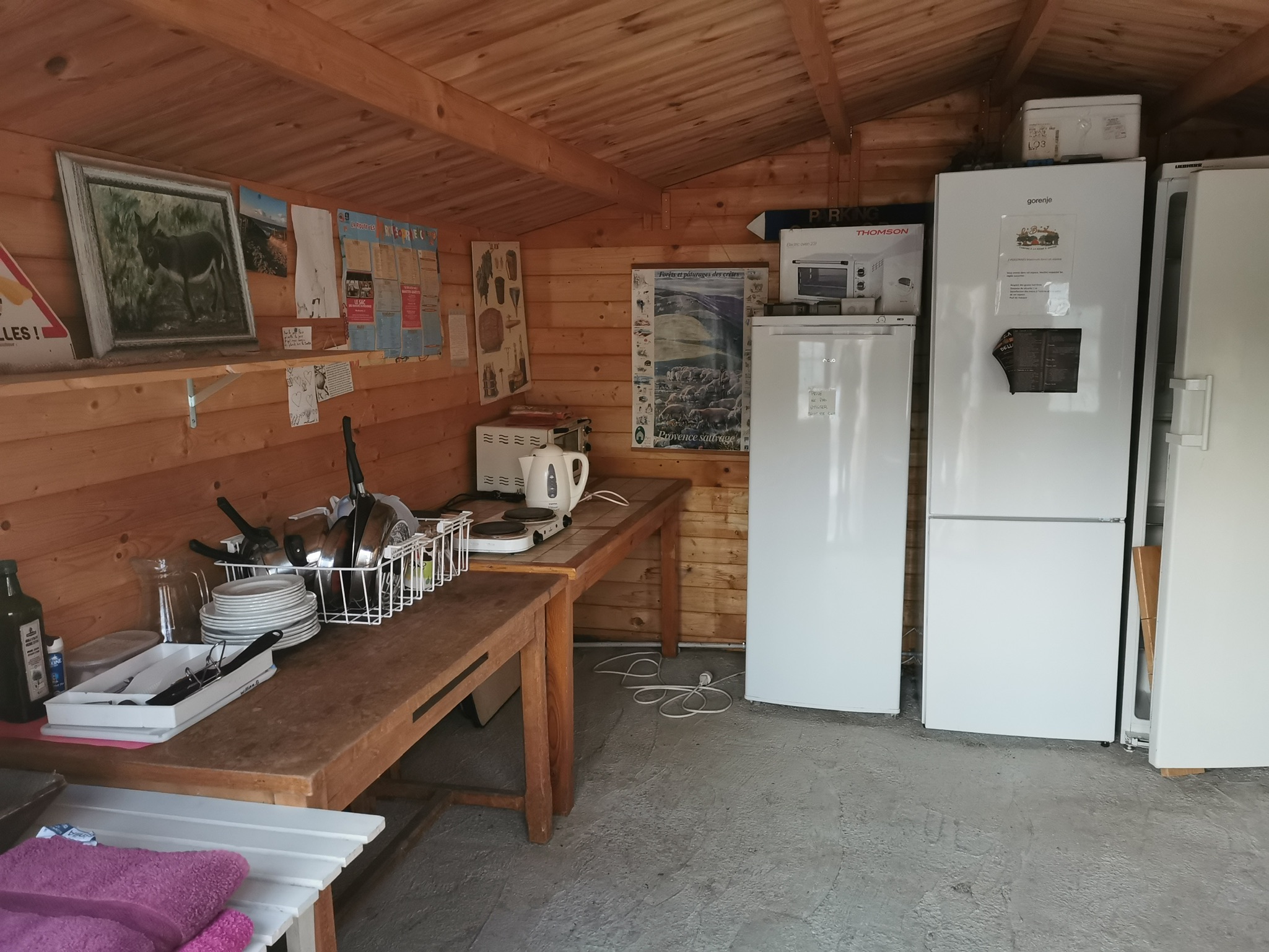 Nos hébergements insolite sont équipés de vaisselle, table et chaises d’extérieur, d’une prise électrique pour faire charger les téléphones et d’une lampe solaire. Pour cuisiner nous avons une cabane commune avec des plaques de cuisson, bouilloire, frigo et congélateurs, la cuisine ne se fait donc pas dans l’hébergement.