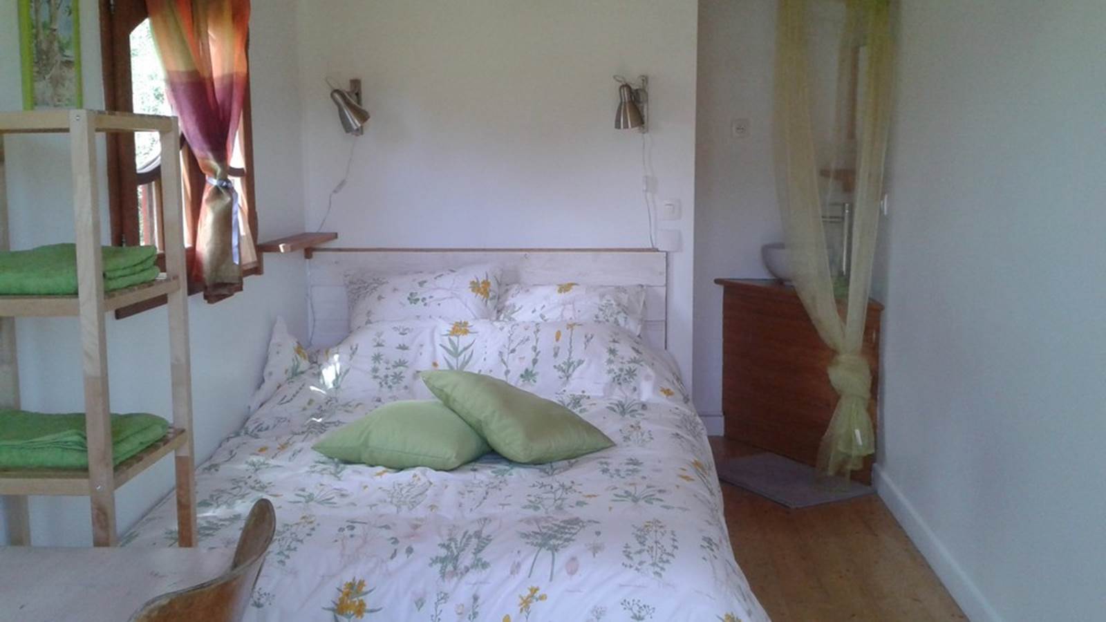 Installée dans un parc arboré, à 50 mètres de la maison, la roulotte « nature et bois » vous charmera par son ambiance chaleureuse : une isolation écologique en laine de bois, des toilettes sèches et un lave-mains, mais aussi un lit en 140, une table avec deux chaises, un réfrigérateur, une cafetière Senseo et une bouilloire.