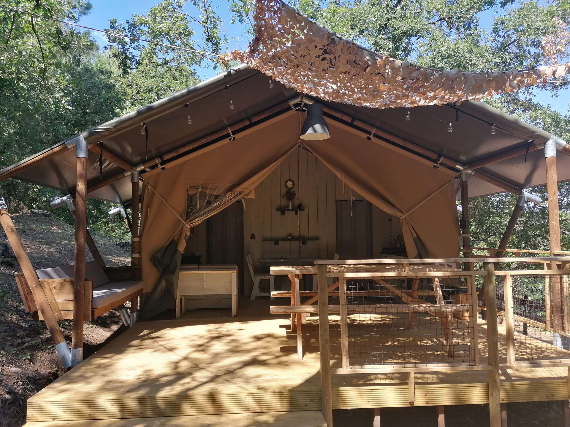La tente est située en pleine nature d’ou vous pouvez partir directement en randonnée, en Trail, en VTT sur les chemins de nos belles Cévennes. Tout est mis en place pour passer un agréable et paisible séjour.