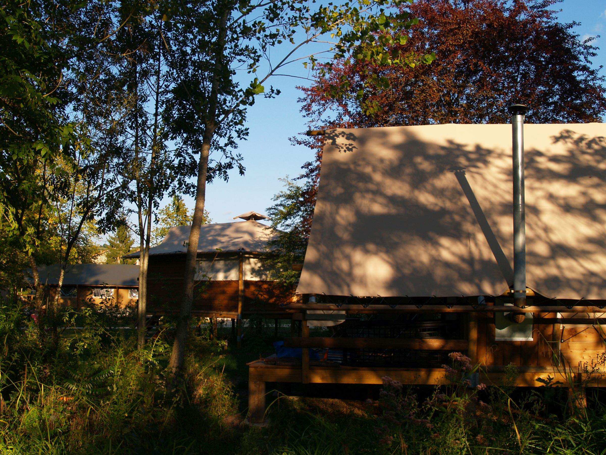 Equipées pour 4/5 personnes, nos Tentes Robinson sont installées sur des emplacements de 200 à 300 m². Elles sont cachées dans l’espace boisé, bien à l’ombre, à l’abris des regards.