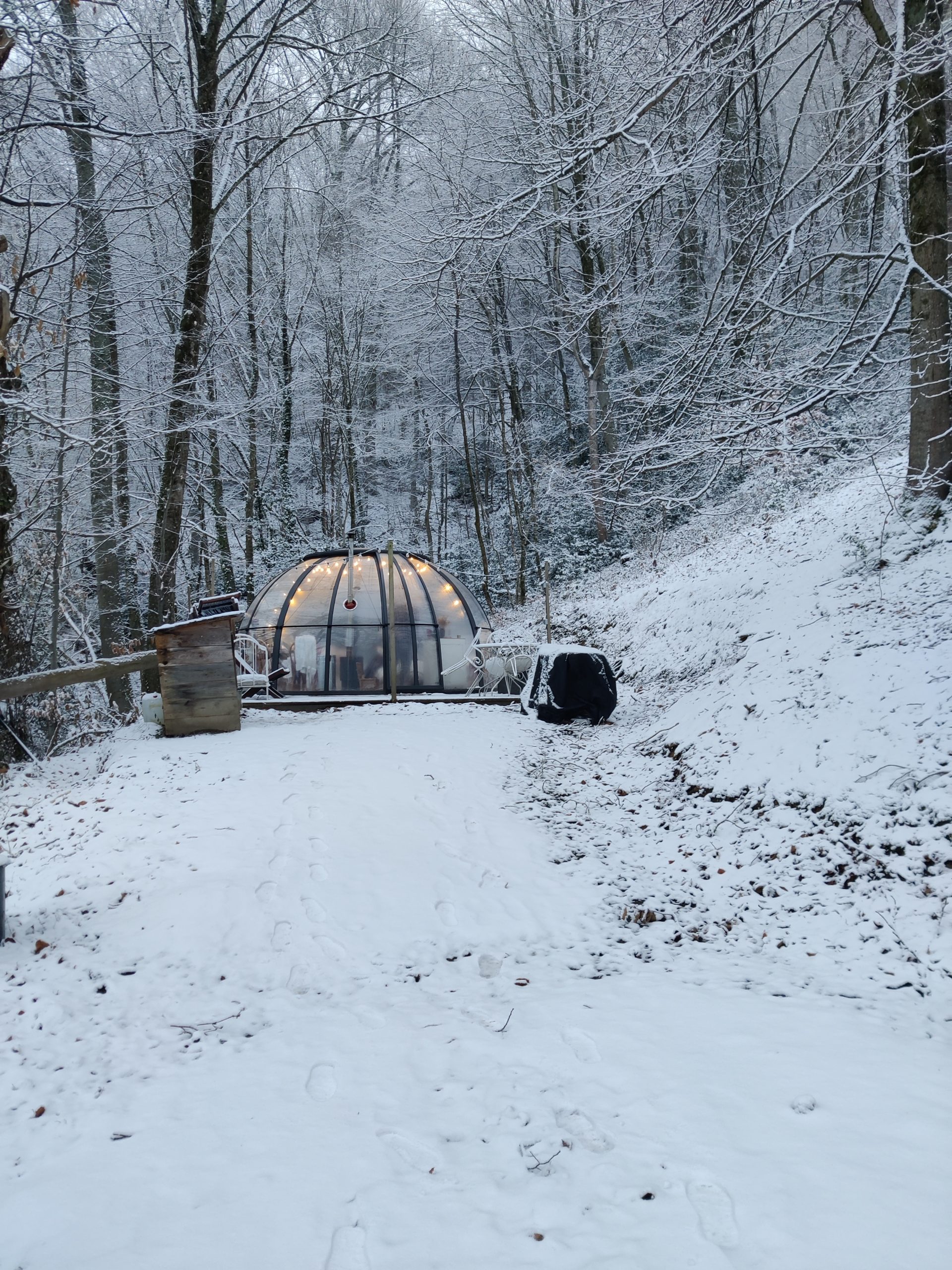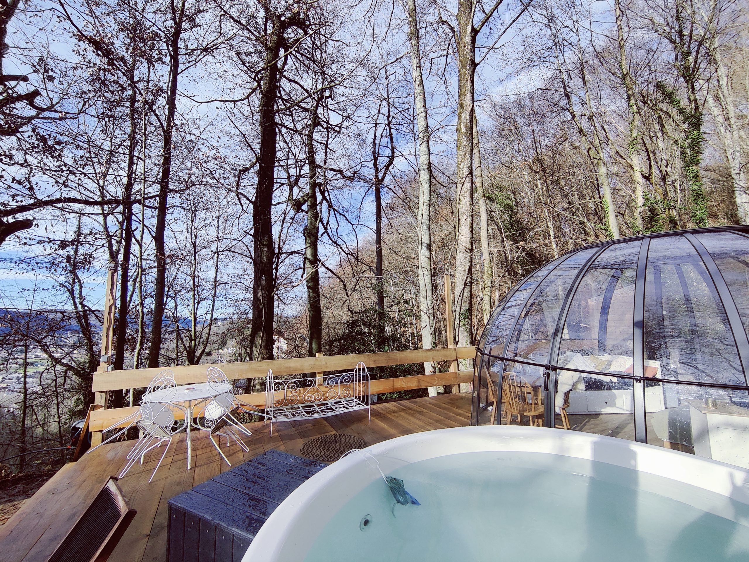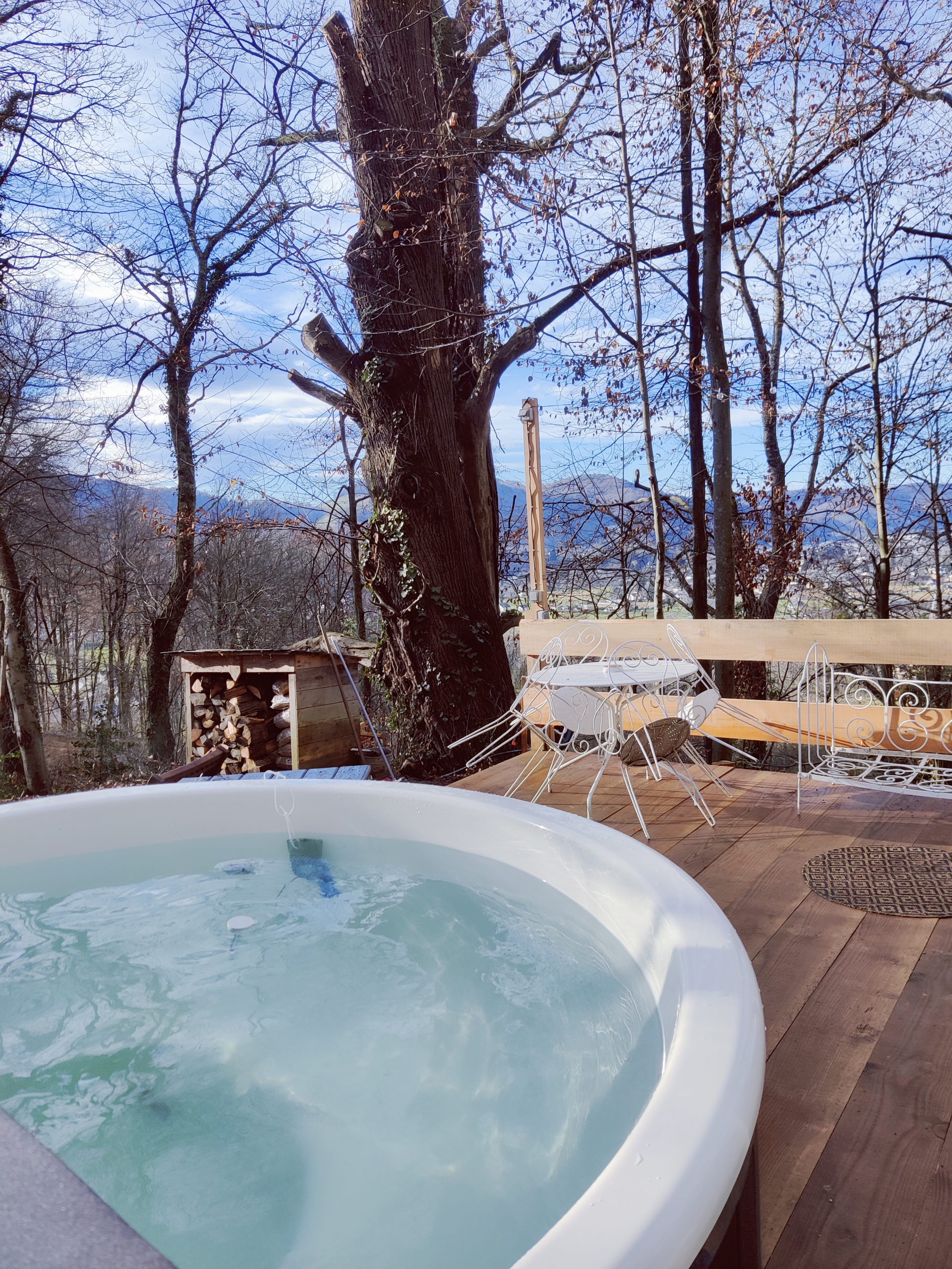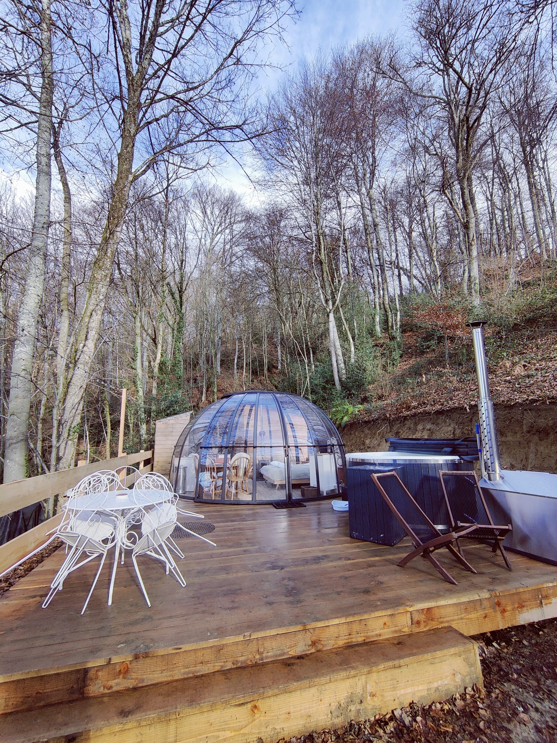 Prolongez l’expérience avec le Bain nordique privatif installé en extérieur sur la terrasse du logement (eau chauffée à 38 degrés à l’aide d’un poêle à granulés). Il est inclus dans la prix de la nuit et les peignoirs de bain sont fournis.