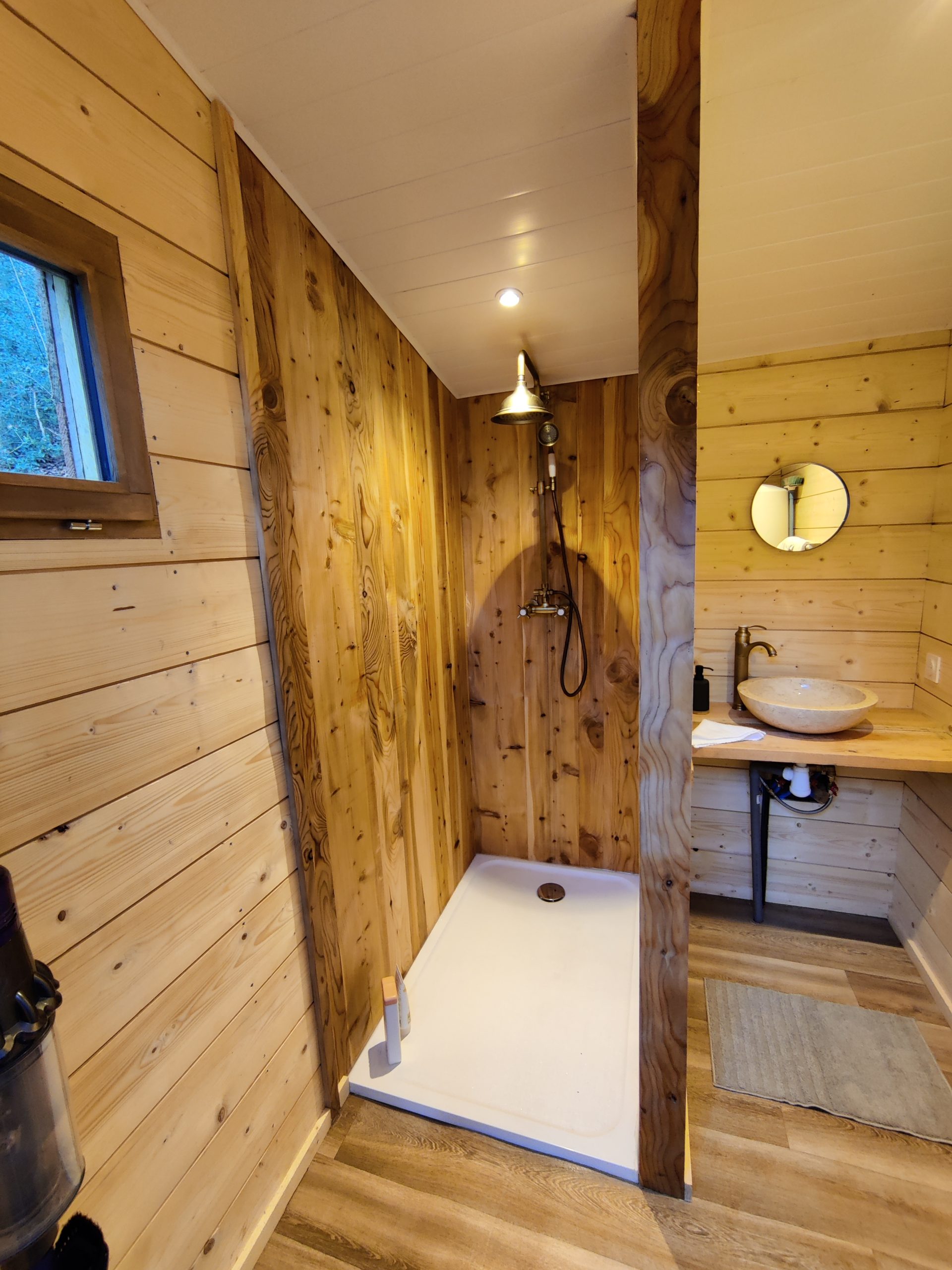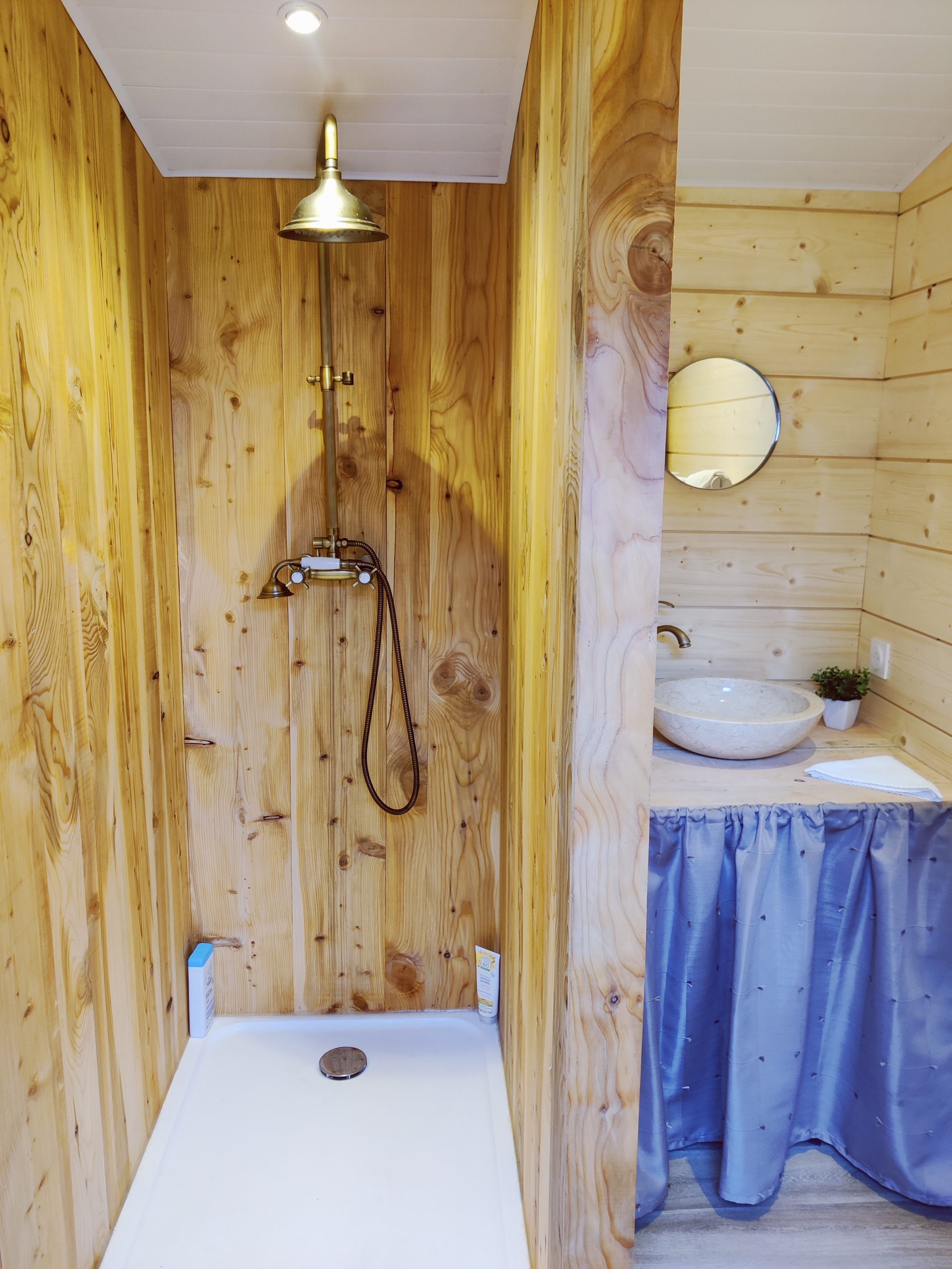 Salle de bain et toilettes sèches privatives à côté du logement.