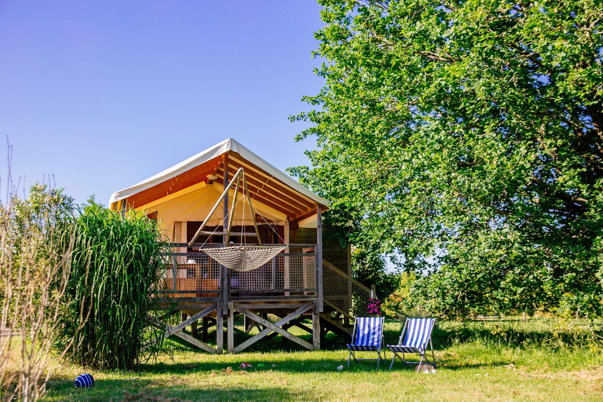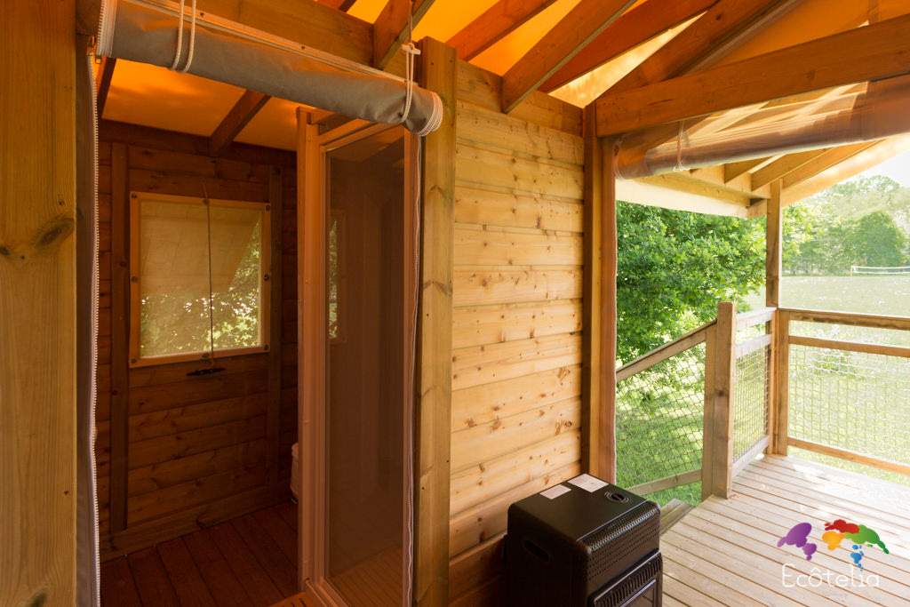 La tente safari représente l’aventure à l’état pur. Ecolodge utilisée pour héberger les touristes en pleine nature dans un cadre exotique, elle bénéficie d’un grand confort. Perchée sur des pilotis de 1m20 de hauteur et équipée de son carrelet, elle symbolise les très nombreuses cabanes de pêcheurs qui peuplent les îles de l’Océanie. Les pilotis permettaient aux habitants de ne pas se retrouver les pieds dans l’eau en cas de fortes vagues. Le carrelet, lui, permettait de pêcher directement dans l’eau à l’image de ce qui se pratique encore beaucoup dans l’estuaire de la Gironde.