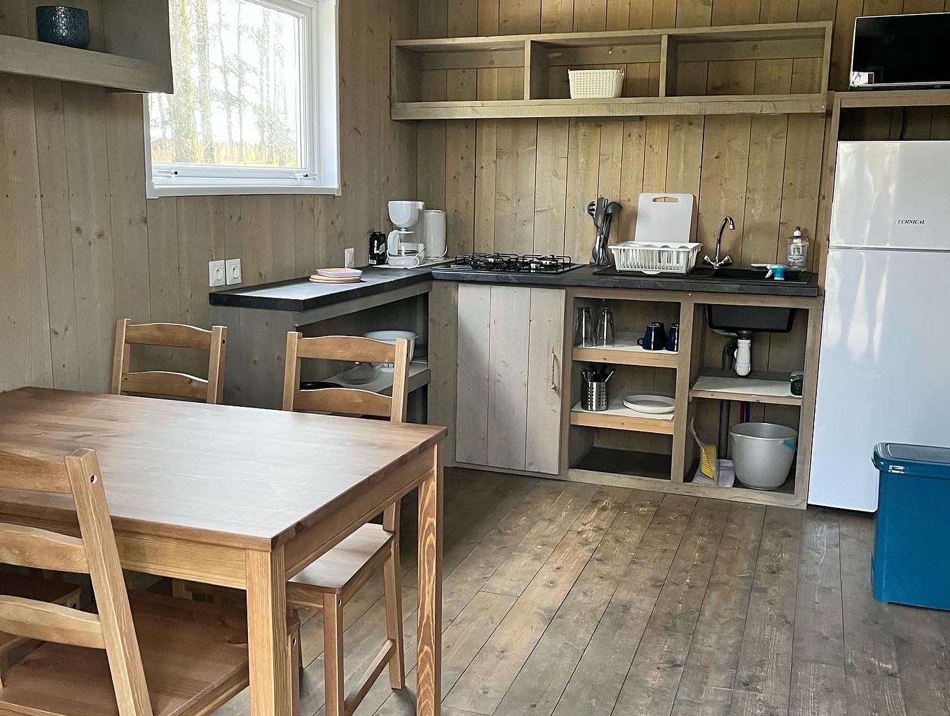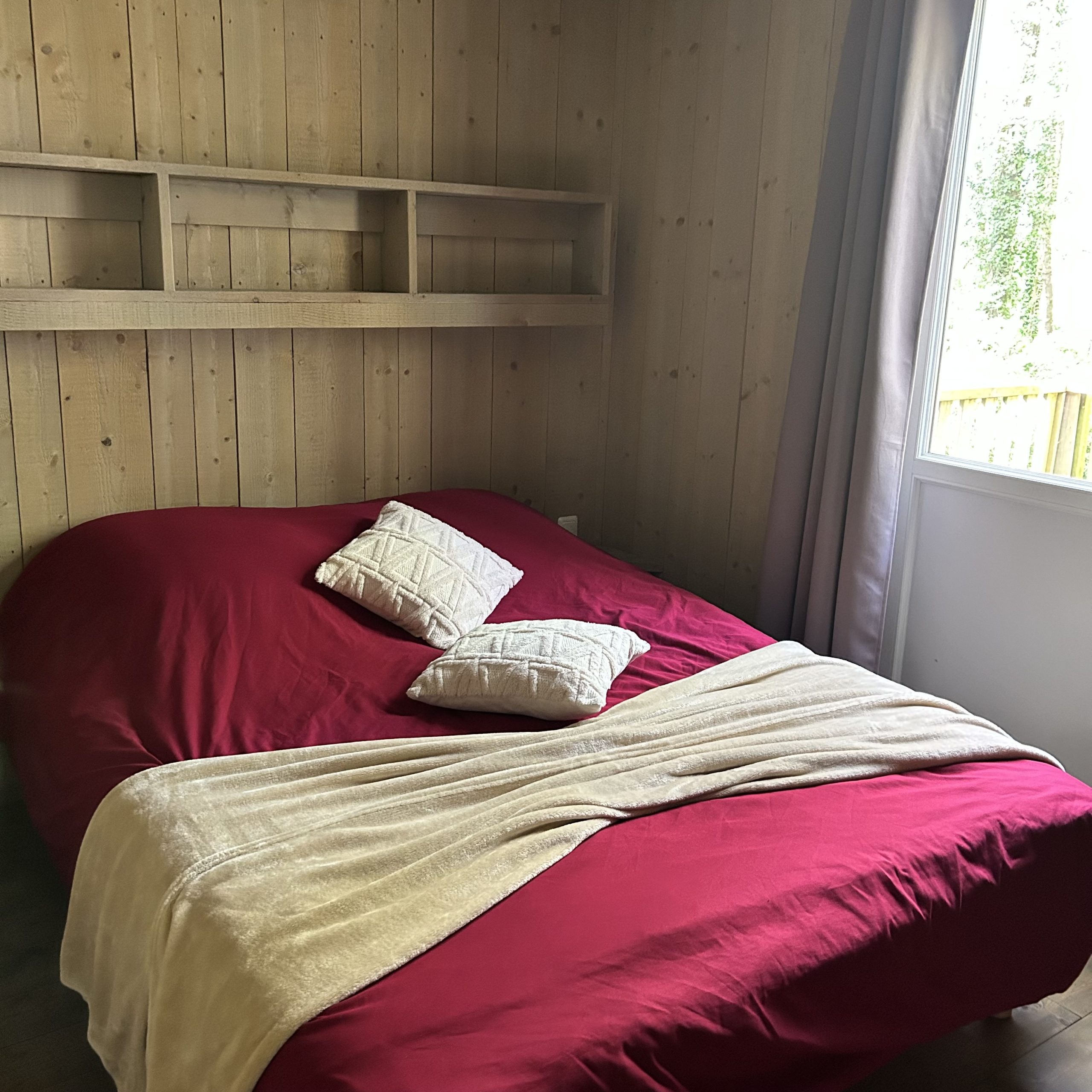 La cabane dispose de 2 chambres séparées ; 1ère avec 2 lits de 80 et la deuxième avec 1 lit double de 140. Les couvertures et oreillers sont fournis et vos lits seront fait à votre arrivée, les serviettes de toilettes seront également disponible. Pour encore plus de confort, vous avez une salle d’eau avec une grande douche, un vasque et étagère. Les WC sont séparés.