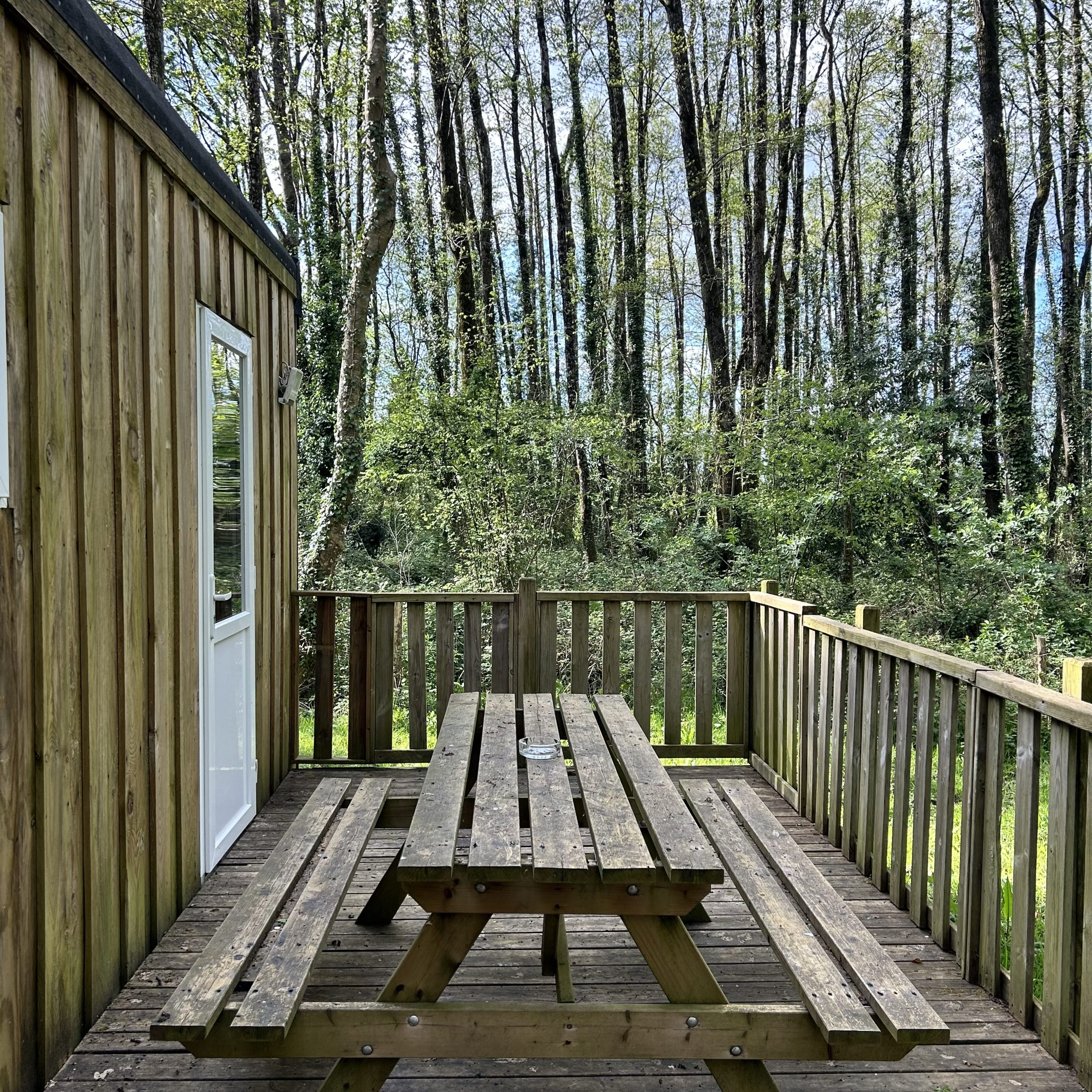 Cabane en bois avec jacuzzi et chalet tout confort en forêt et au bord d'étang
