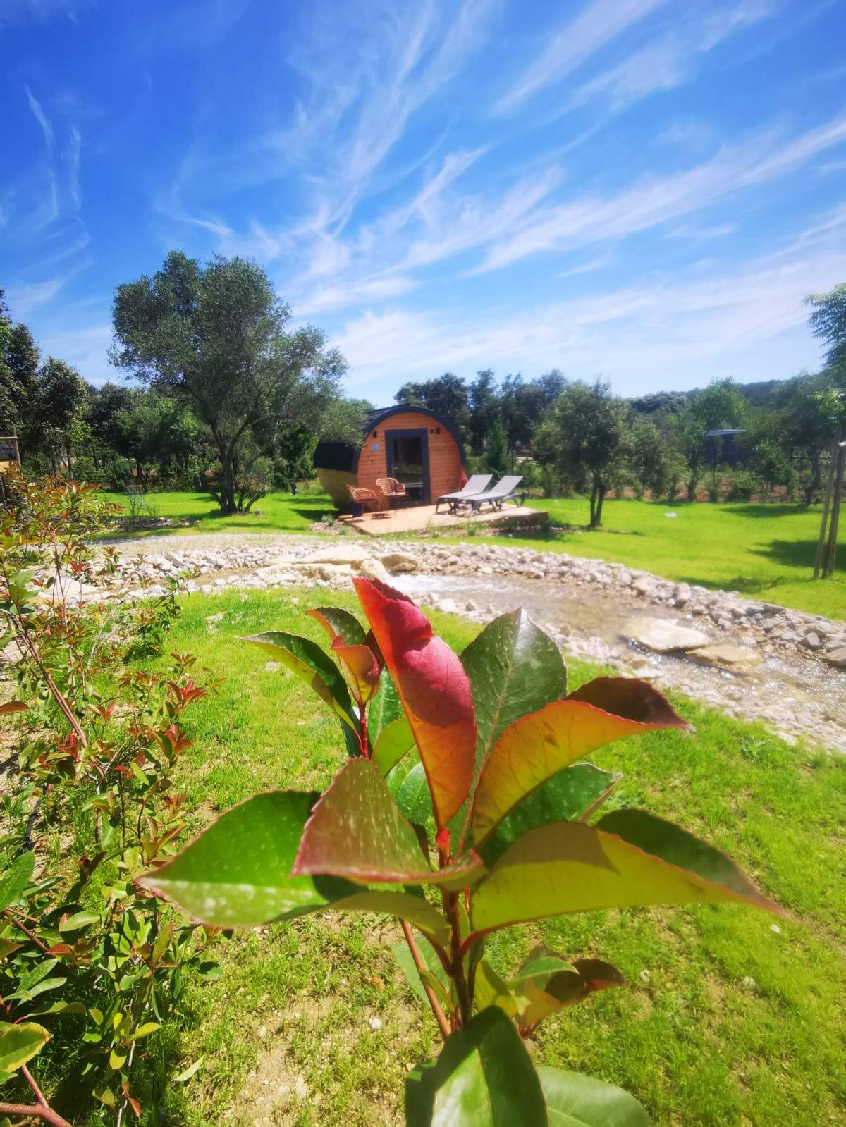 Le tonneau dispose d’une terrasse avec mobilier extérieur et deux transats pour profiter des rayons chauds du soleil du Sud de la France.