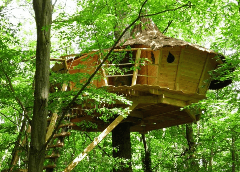 Nous démarrons notre sélection de logements atypiques proches de la Ville lumière avec Les Cabanes de la Tour à Janville-sur-Juine. Dans l’Essonne, au cœur de la forêt de Pocancy, venez vivre une expérience nature revigorante dans l’une des deux cabanes perchées du domaine !