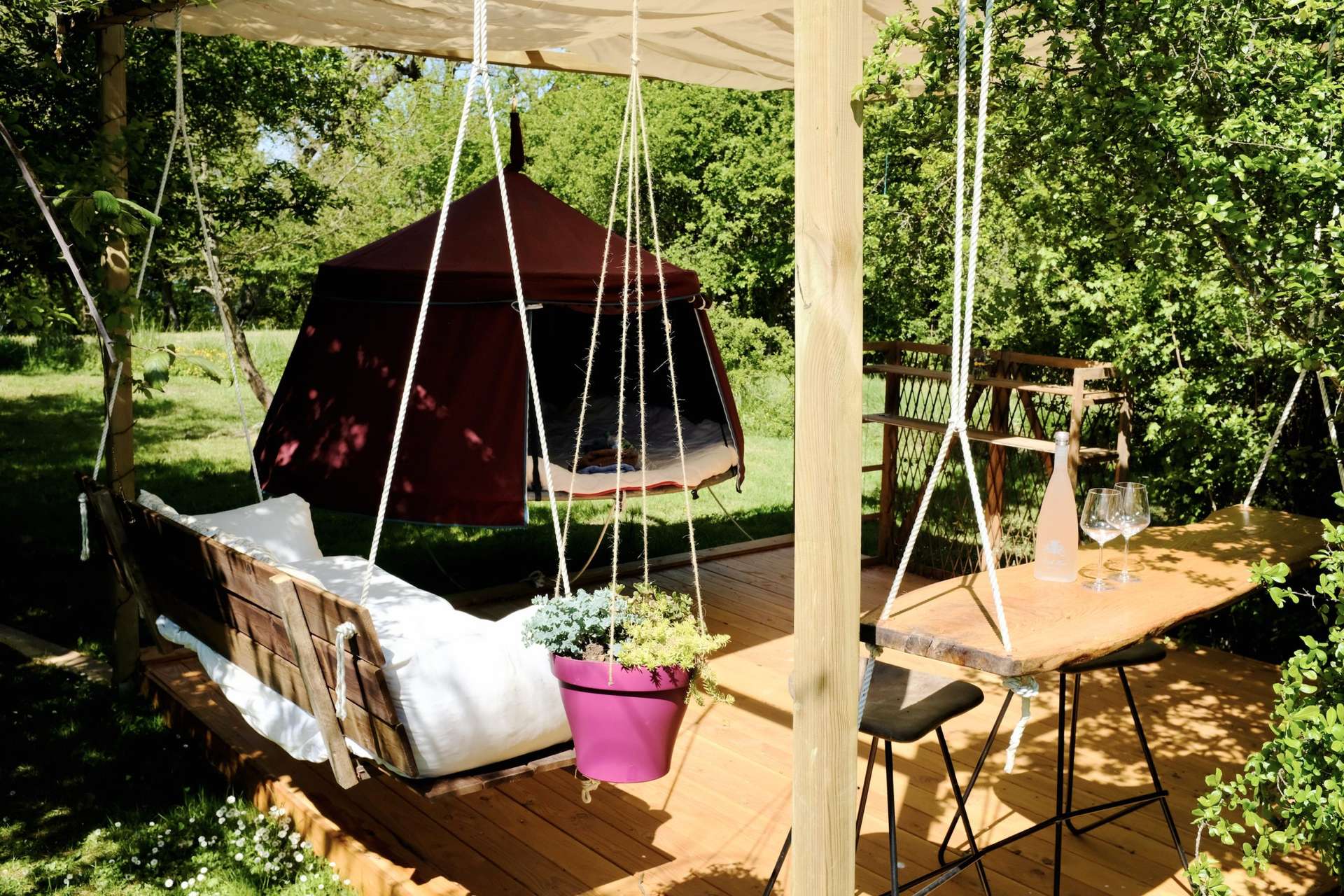 Ouvert en 2010, les Robinsonades vous proposent des hébergements INSOLITES et ÉCOLOGIQUES au milieu de la nature pour un séjour , en famille, entre amis ou en couple, dans des cabanes perchées , tentes suspendues ou cocoon ,en bord de Garonne à 60km au sud de Toulouse. .