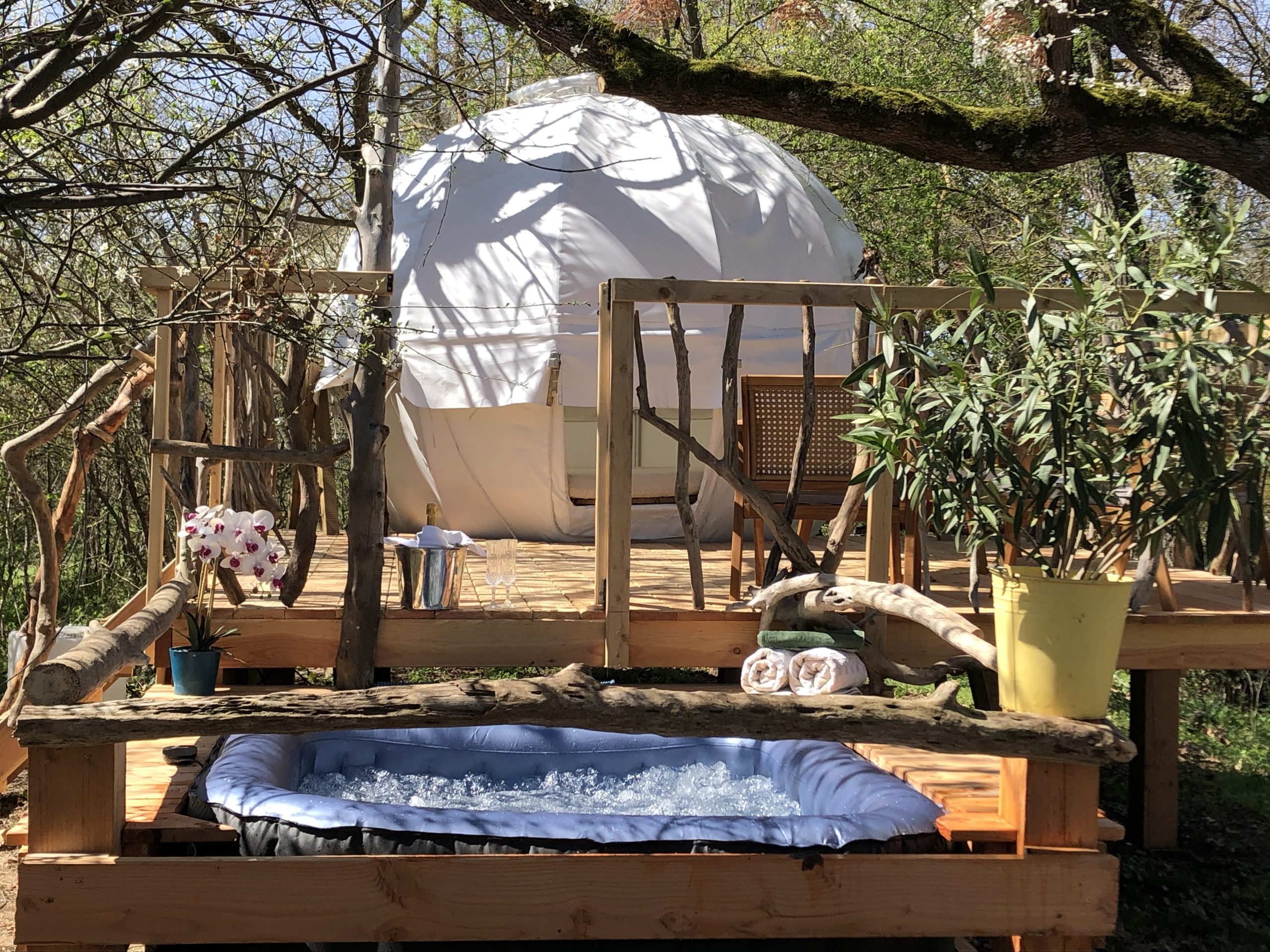 Un petit déjeuner avec des produits maison et de qualité (et plébiscité par nos clients!!) vous sera servi, à l’heure que vous souhaitez, dans votre hébergement pour les cabanes ou à proximité, en extérieur pour les tentes suspendues et le cocoon.