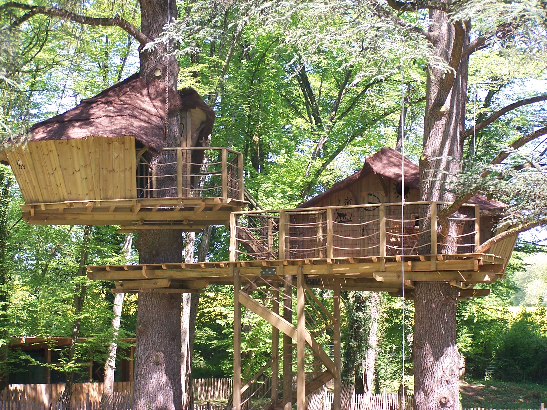Les cabanes insolite sont dispersées dans le Parc de la Belle. Sans vis-à-vis. Elles sont placées à différentes hauteurs, de 5 à 14 mètres de haut. A escalier ou pont de singe, elles sont conçues pour un couple ou pour une famille, pour des sportifs ou des rêveurs.