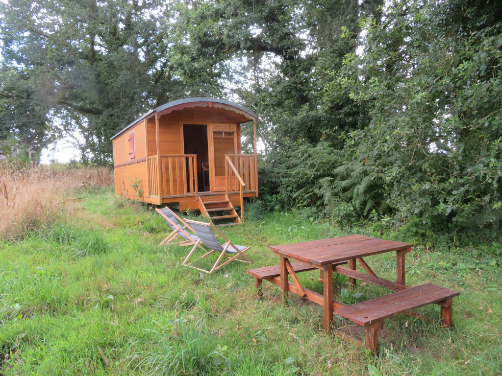 Un séjour dans une roulotte ou une cabane aménagée, installées au coeur de la nature, près du lac de Kerné Uhel, dans les Côtes d’Armor (centre Bretagne).