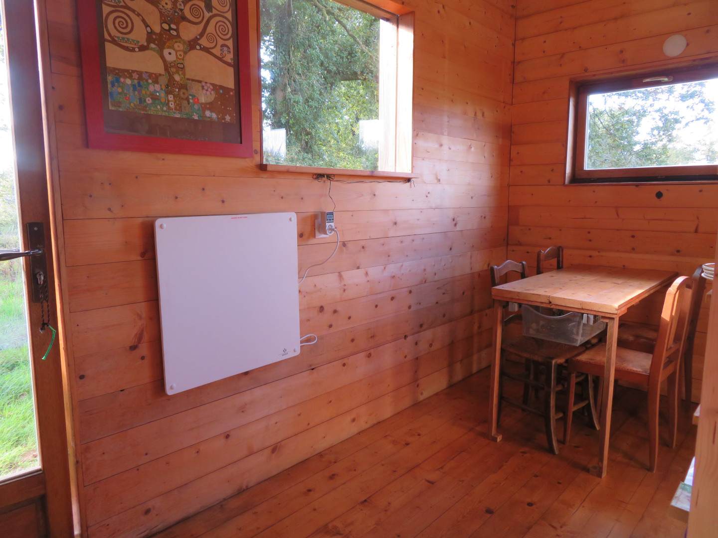 Hébergement pour deux personnes dans la roulotte, et jusqu’à quatre dans la cabane, aménagées en conciliant confort et sobriété énergétique : lits doubles, coin cuisine (plaques gaz, frigo, évier …), douche, toilettes sèches, électricité solaire 12V et petit jardin.